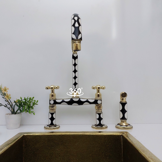 Unlacquered Brass and Resin Bridge Faucet with Sprayer, Antique Brass Faucet with Cross Handles - Ref: BFR1SCVendor:AtlastyRegular price From $599.00 USDRegular priceUnit price per-