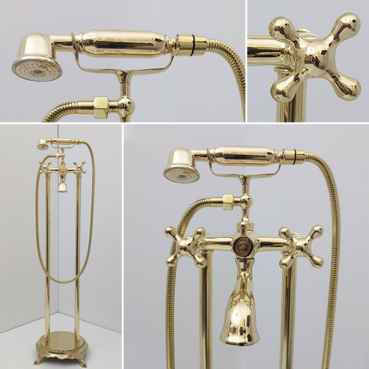 Unlacquered Brass Freestanding Bathtub Faucet, Floor Mounted Tub Filler with Hand Shower - Ref: TF002Vendor:AtlastyRegular price $819.00 USDRegular priceUnit price per-