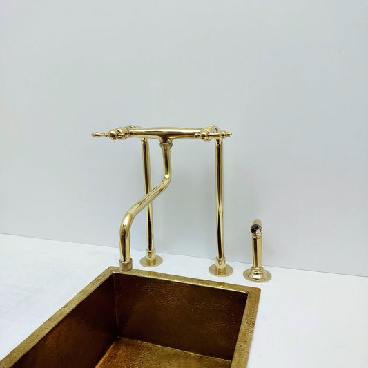 Unlacquered Brass Kitchen Victorian Bridge Faucet with Sprayer - Ref: AKFL-2Vendor:AtlastyRegular price $449.00 USDRegular priceUnit price per$500.00 USDSale price $449.00 USDSale