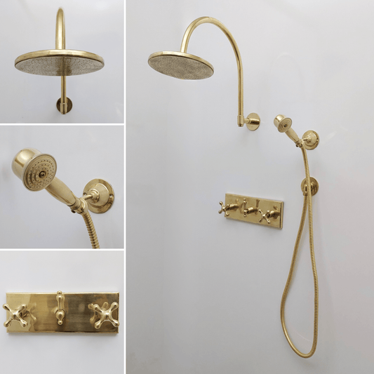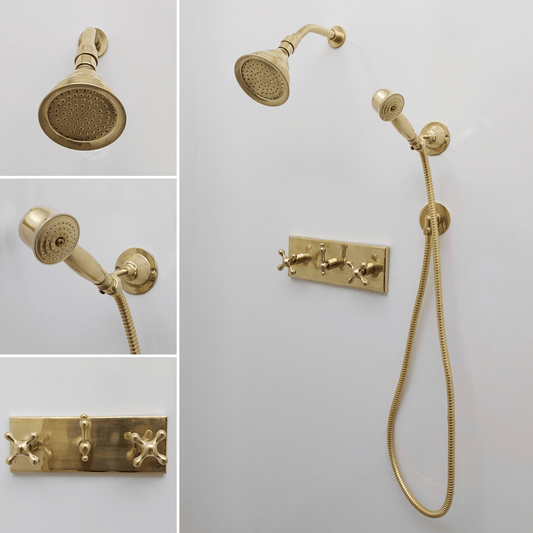 Unlacquered Brass Shower System with Handheld Shower Head and Round Rain Shower Head - Ref: ATLASS50Vendor:AtlastyRegular price $509.00 USDRegular priceUnit price per$599.00 USDSale price $509.00 USDSale