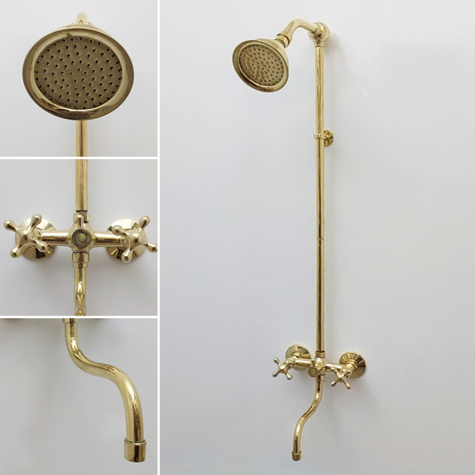 Unlacquered Brass Shower System with Adjustable Round Shower Head, Tub Filler, and Cross Handles - Ref: SSA8TFCVendor:AtlastyRegular price $649.00 USDRegular priceUnit price per-