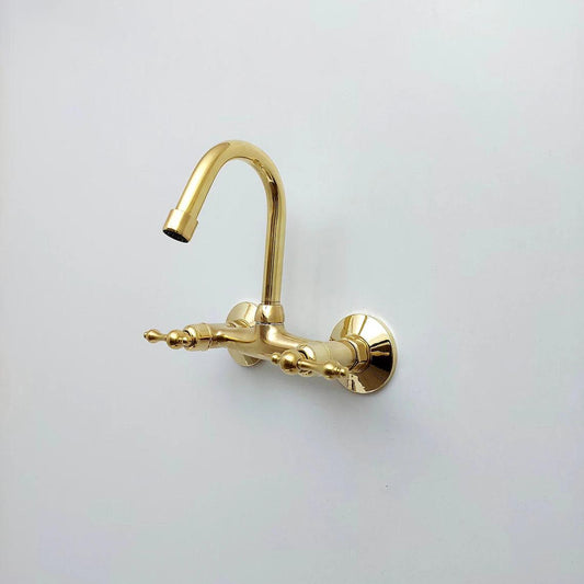 Unlacquered Brass Wall Mount Faucet, Gooseneck Faucet with Lever Handles - Ref: WFL004