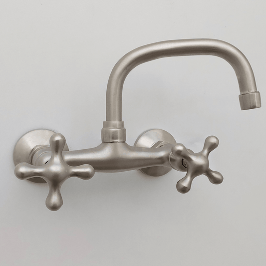 Wall Mount Brass Faucet, Brushed Nickel Finish Gooseneck Faucet with Cross Handles - Ref: WFCN002