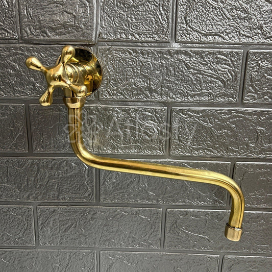 Unlacquered Solid Brass Wall Mounted Faucet with Cross Handle - Ref: AWF001