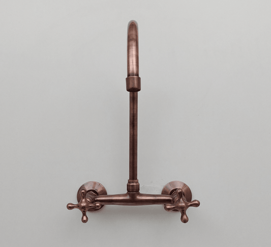 Brass Wall-Mount Bridge Faucet, Antique Copper Finish Faucet with Cross Handles - Ref: WFC005