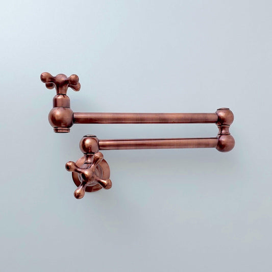 Copper Pot Filler with Cross Handle, Antique Kitchen Wall Mount Pot Filler - Ref: PF-001-CC