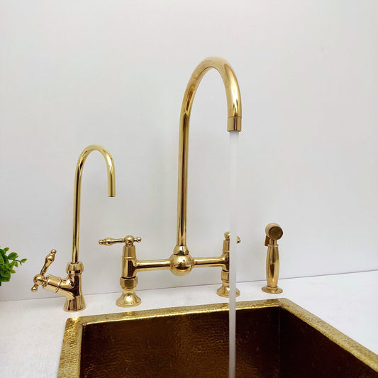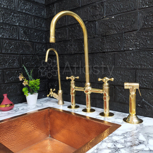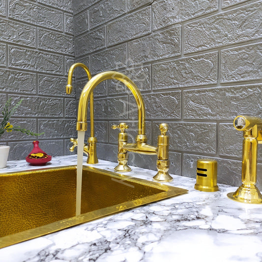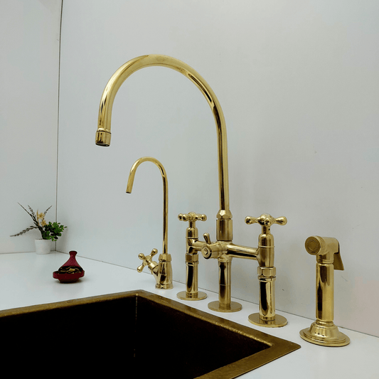 Unlacquered Brass Kitchen Faucet with Sprayer and Cold Water Faucet, Brass Bridge Faucet With Cross Handles - Ref: FA068-LDVendor:AtlastyRegular price From $699.00 USDRegular priceUnit price per-