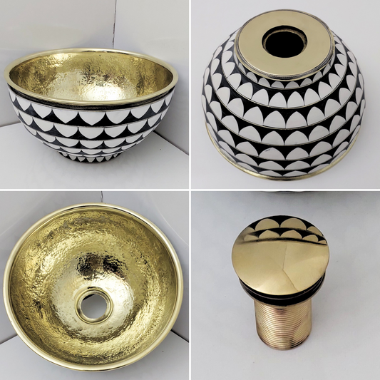 17" Antique Brass Bathroom Sink, Resin Vanity Vessel Sink, Black and White Bowl Sink - Ref: SN025