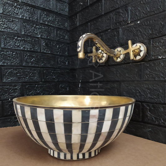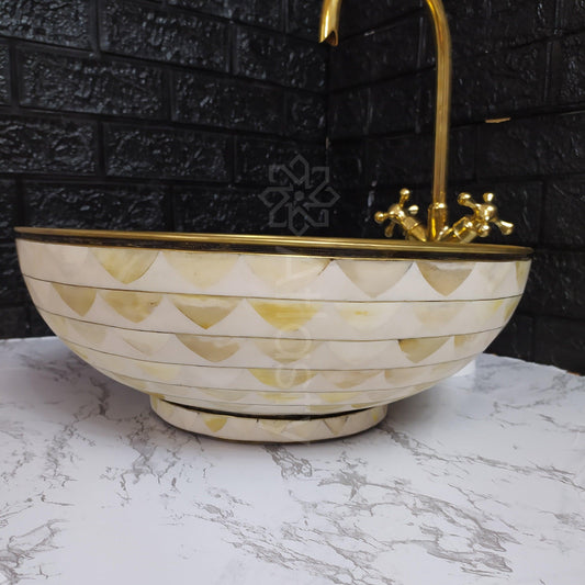 Bathroom Sink created from Brass and Resin, White Pattern, Vanity Vessel Sink
