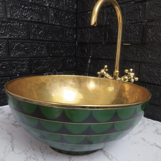 Bathroom Sink created from Brass and Resin, Black and Green Pattern, Vanity Vessel Sink