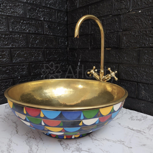 Bathroom Sink created from Brass and Resin, Colorful Design, Vanity Vessel Sink