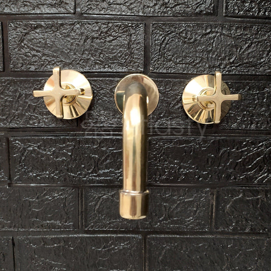 Unlacquered Brass Wall Mount Faucet, Gooseneck Faucet with Cross Handles - Ref: WFC003