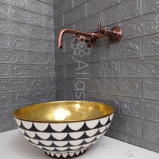 Unlacquered Brass Wall Mounted Bathroom Faucet - Vessel Sink Faucet with Cross or Lever Handles and Snake Mouth