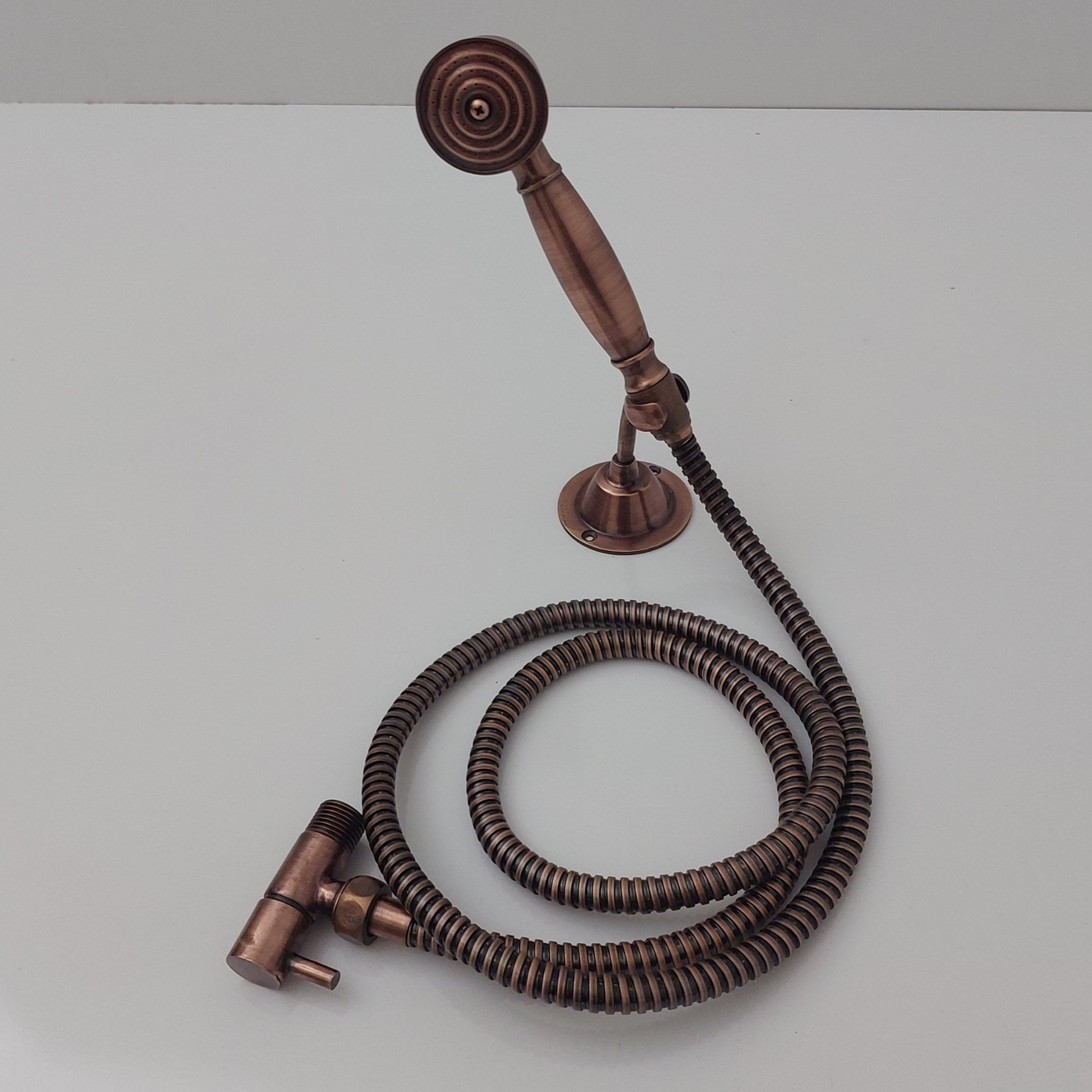 Antique Copper Finish Handheld Shower Head, Wall Mount Solid Brass Handheld Shower Head with Flexible Shower Hose and Control Valve - Ref: WMHSVAC