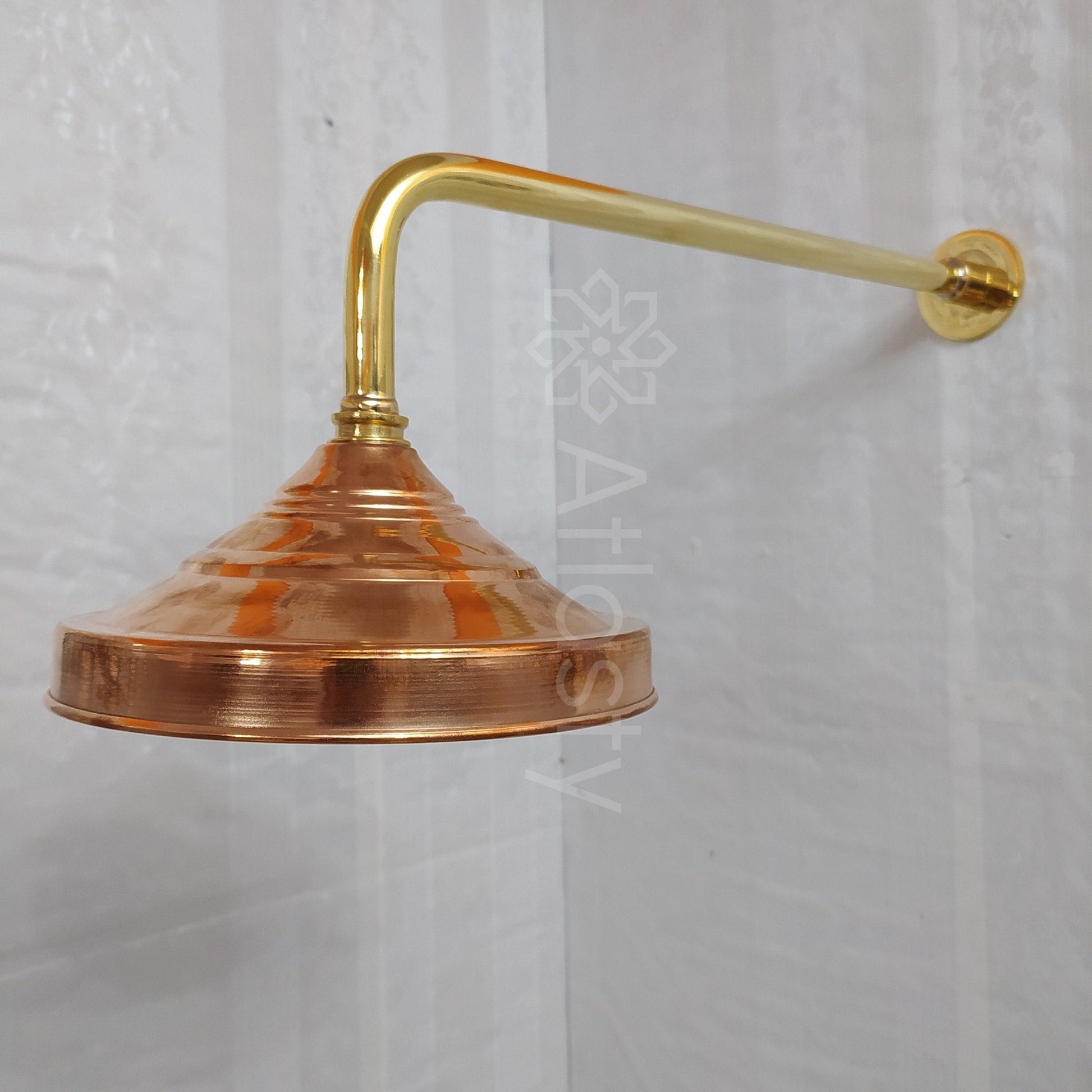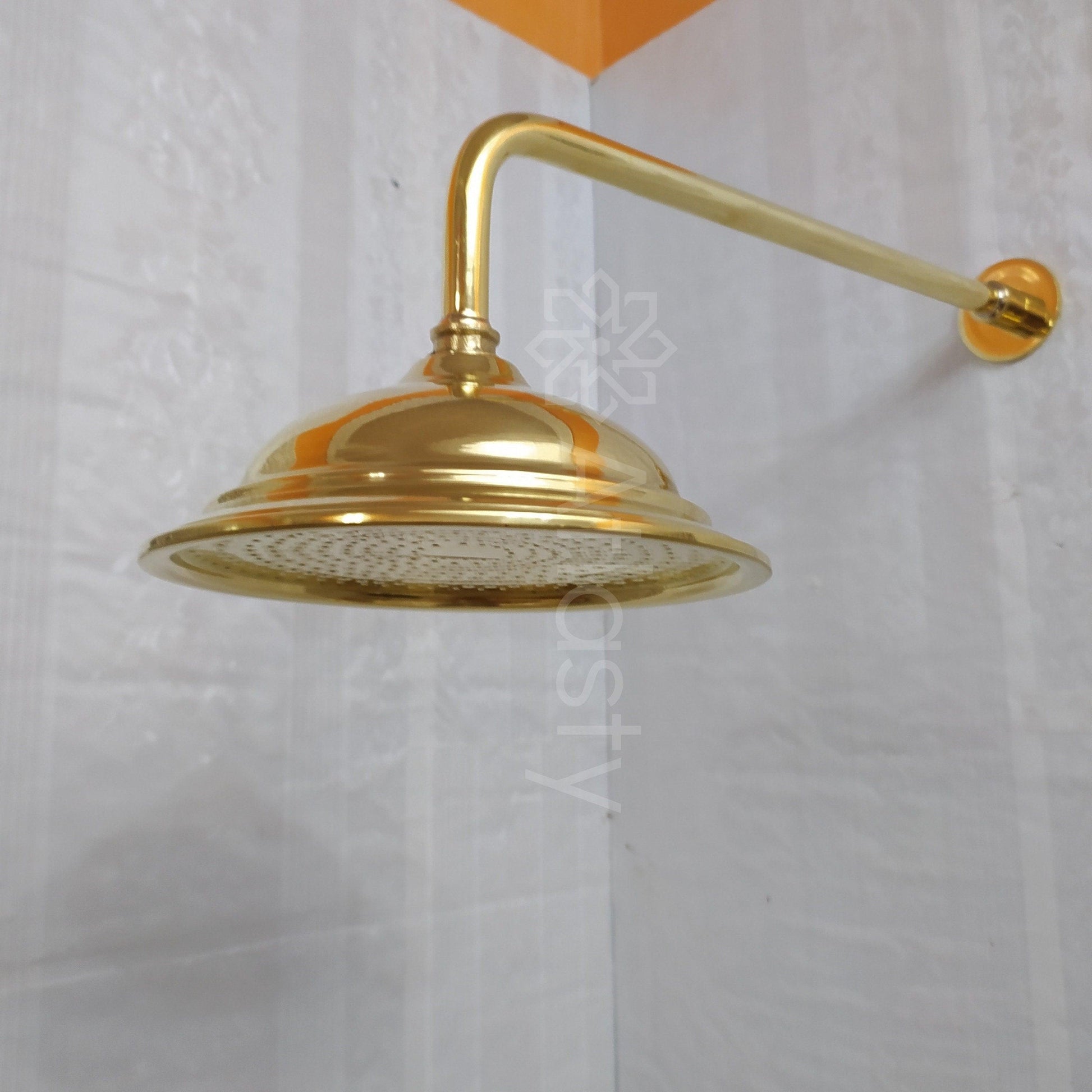 Cabezal de ducha redondo de latón con brazo recto de latón, cabezal de ducha para exteriores e interiores