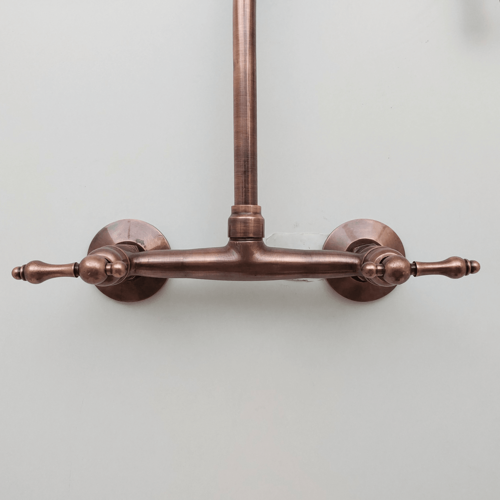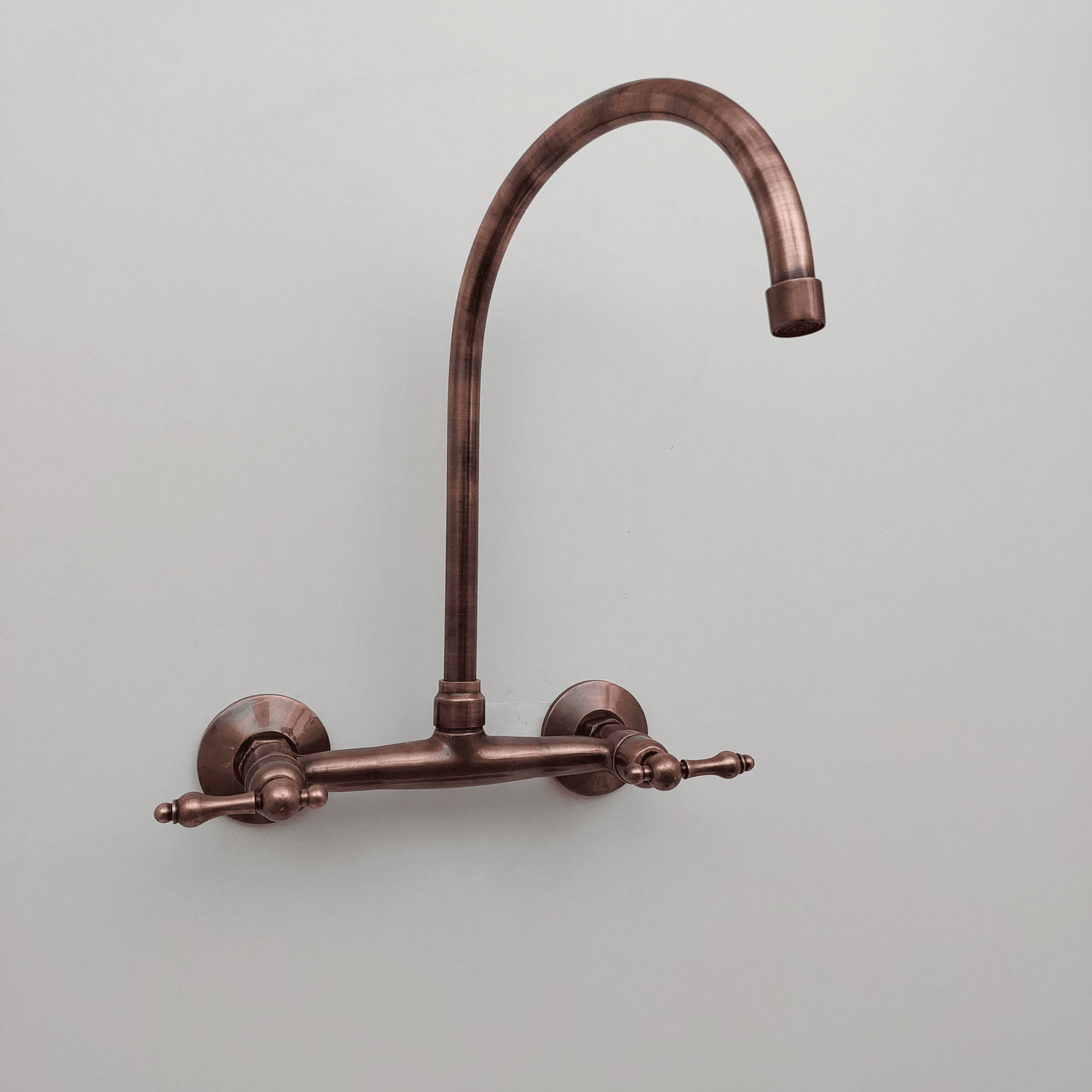 Grifo de pared de latón con acabado en cobre antiguo y manijas tipo palanca - Ref. WFL005