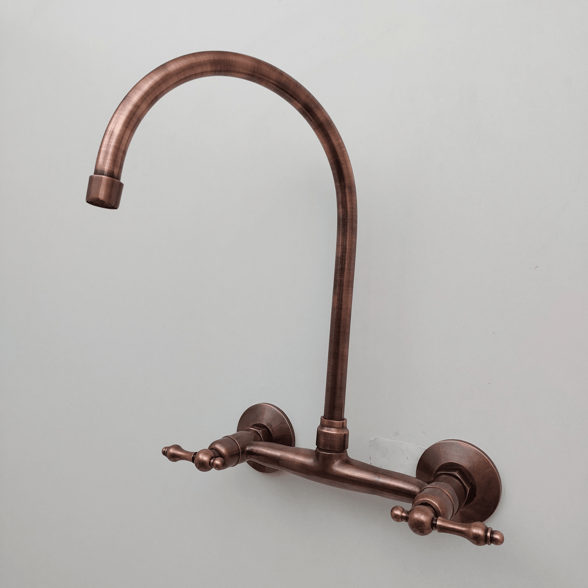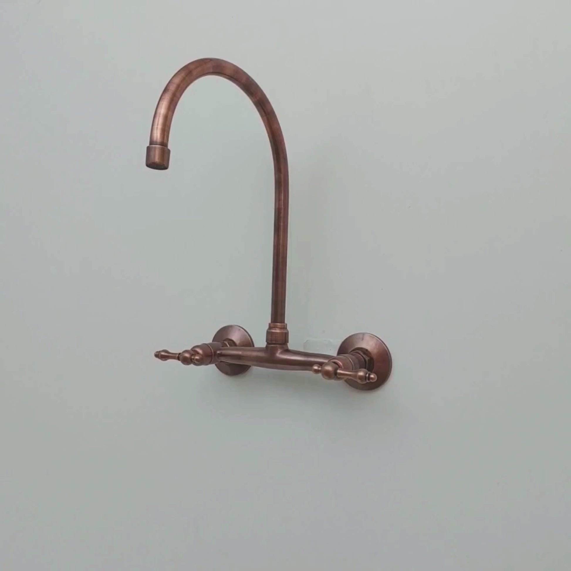 Realce el encanto vintage de su cocina con el grifo de pared de cobre antiguo con manijas tipo palanca . Este grifo, elaborado meticulosamente, combina una elegancia atemporal con una funcionalidad moderna, lo que lo convierte en un complemento ideal tanto para cocinas tradicionales como contemporáneas. El acabado en cobre antiguo intenso ofrece un aspecto cálido y acogedor que complementa una amplia gama de estilos de decoración de cocina , mientras que el diseño de montaje en pared garantiza una solución única y que ahorra espacio para el área del fregadero.