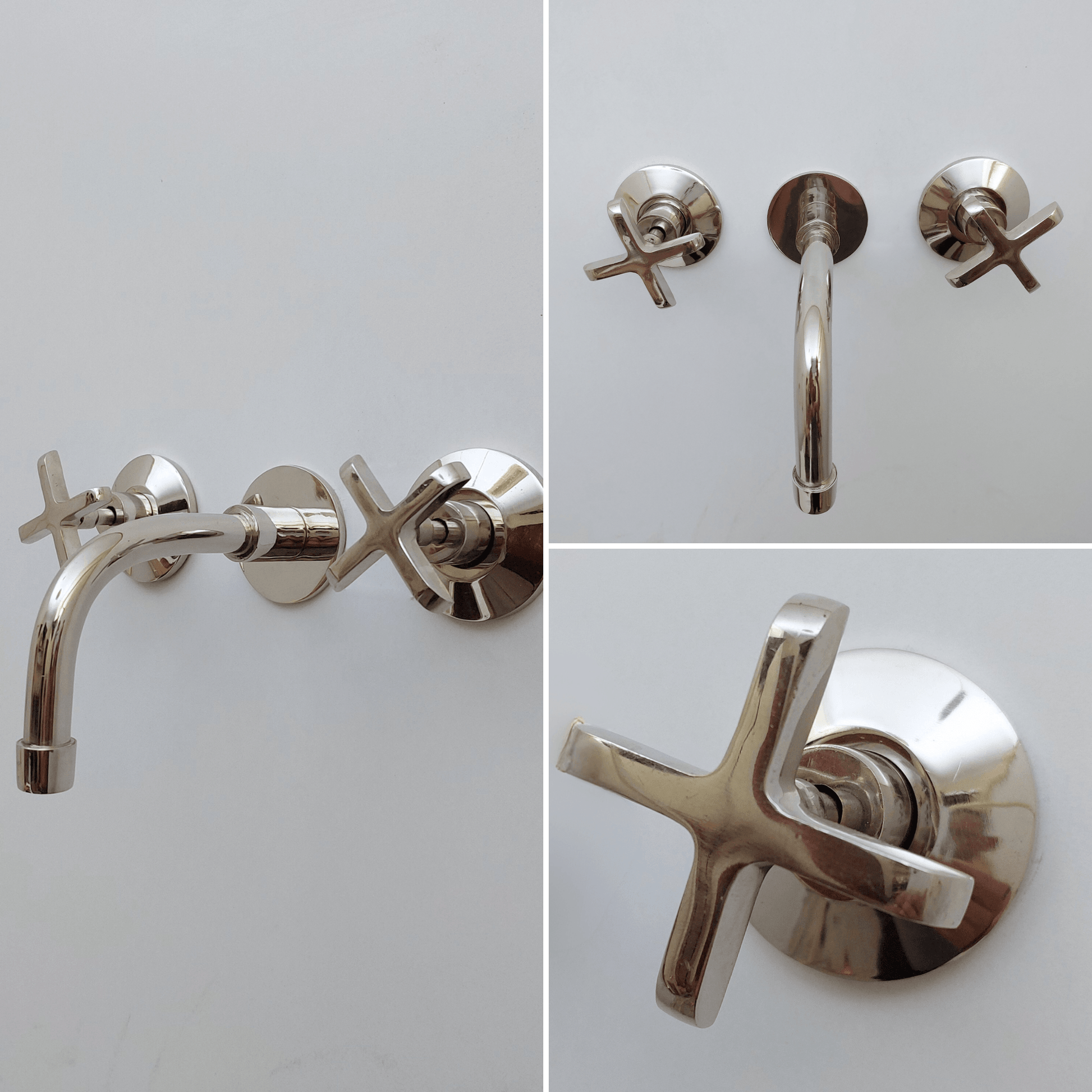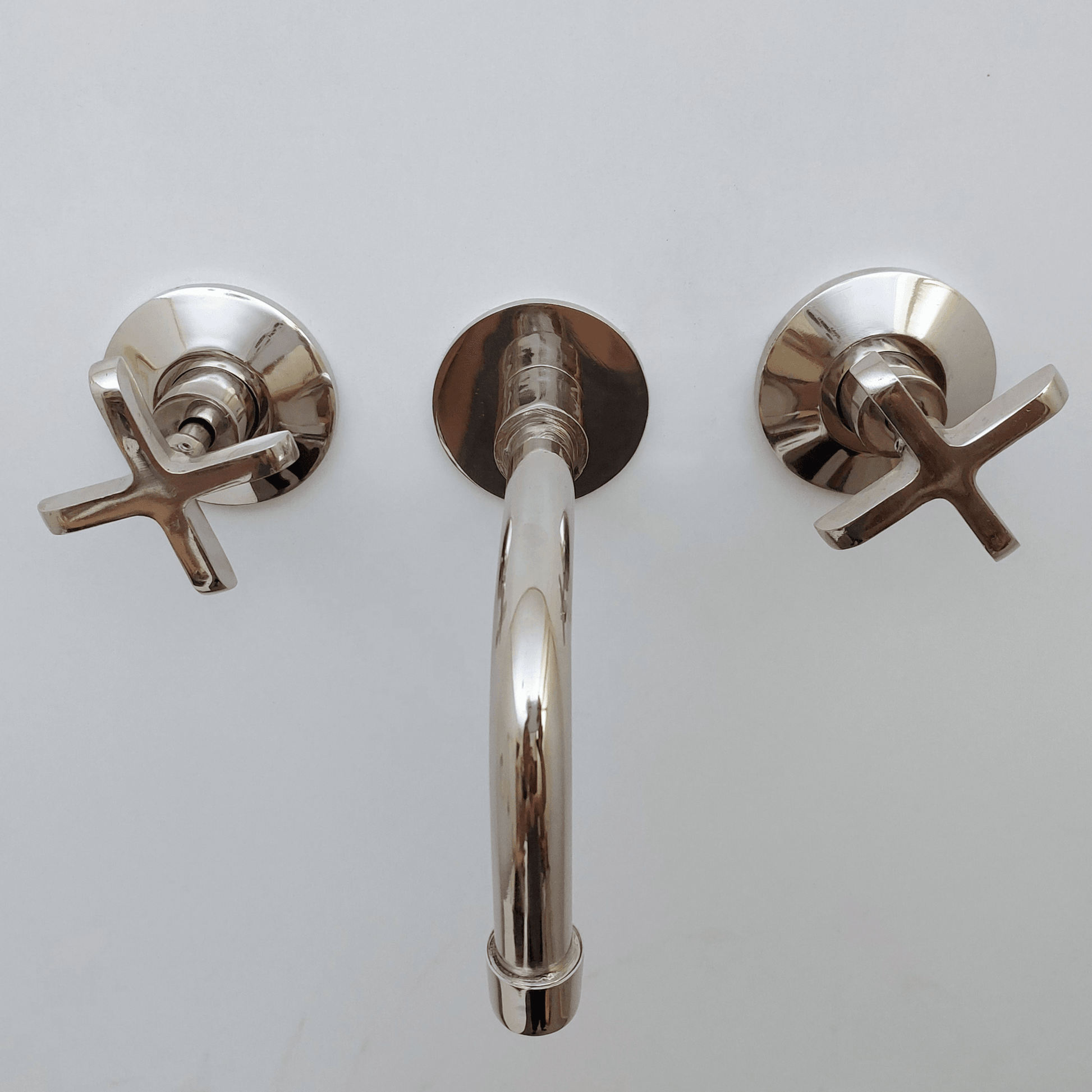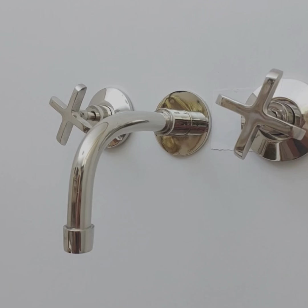 Grifo de baño de pared de latón, grifo con acabado en níquel y manijas en cruz - Ref: WFCN001