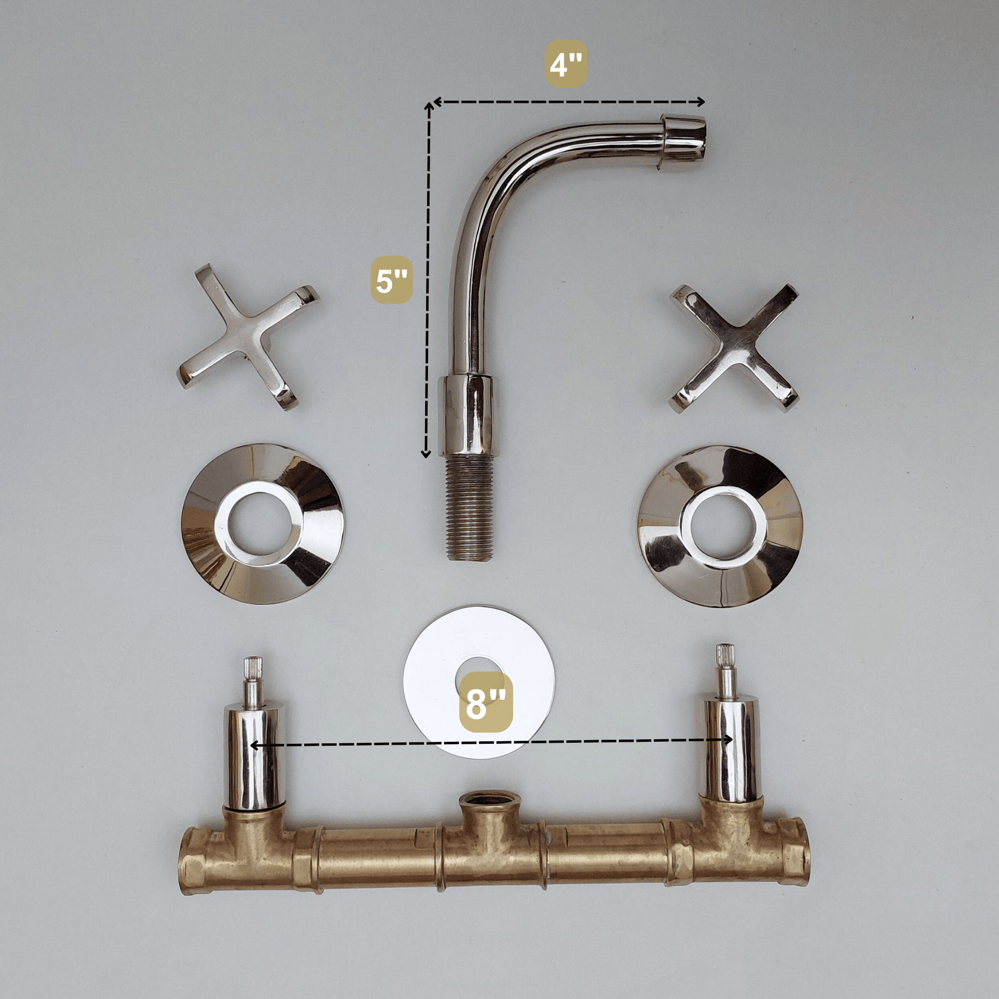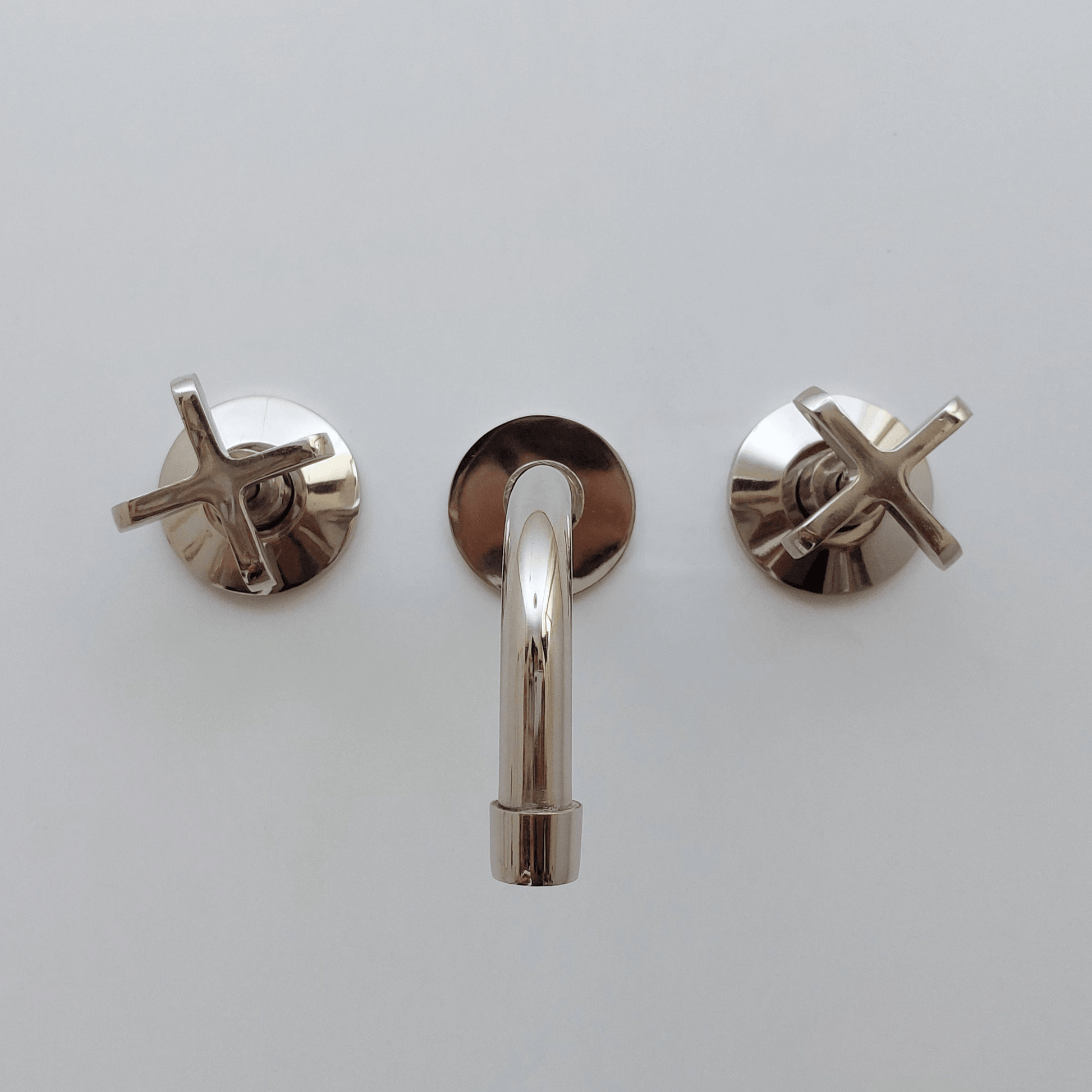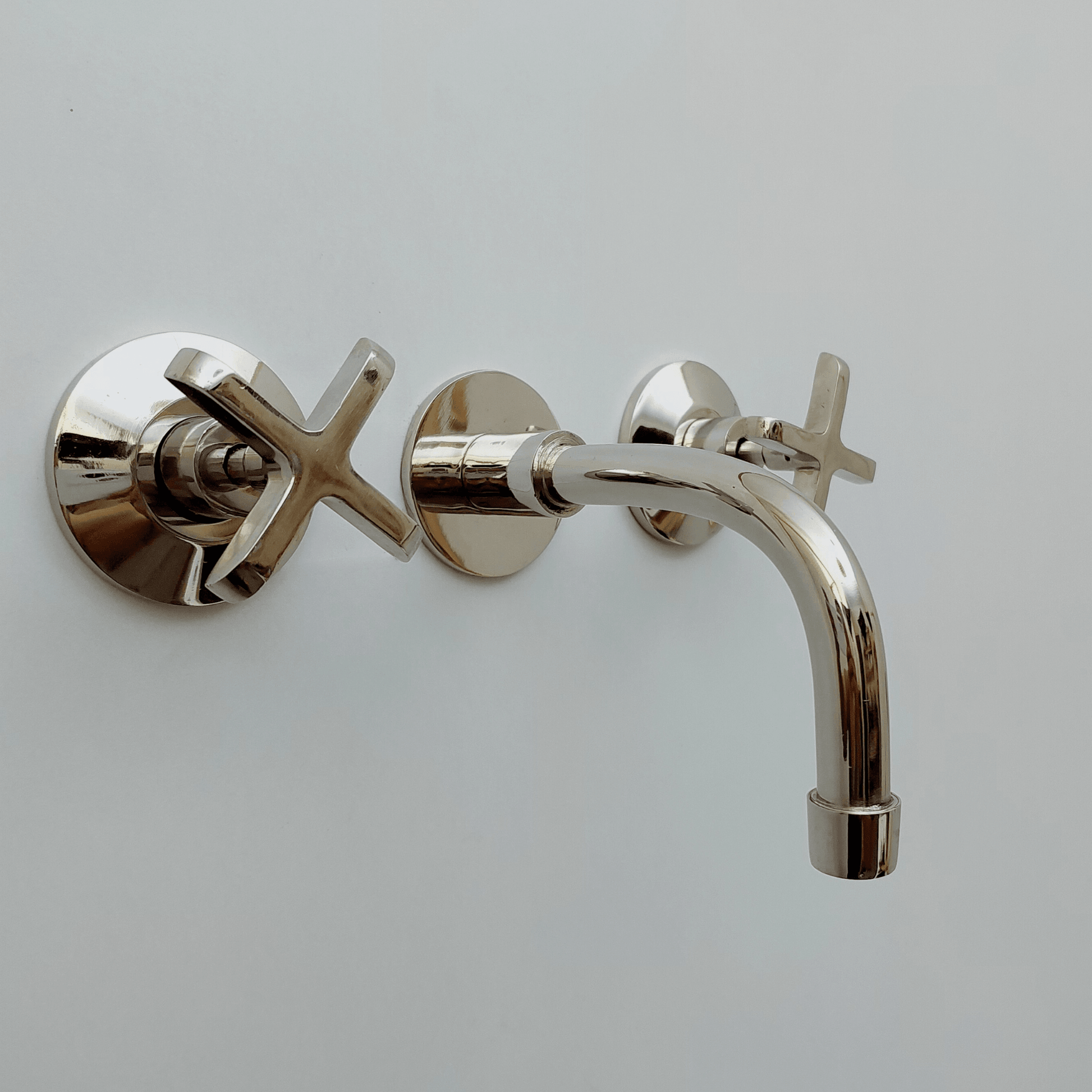 Grifo de baño de pared de latón, grifo con acabado en níquel y manijas en cruz - Ref: WFCN001