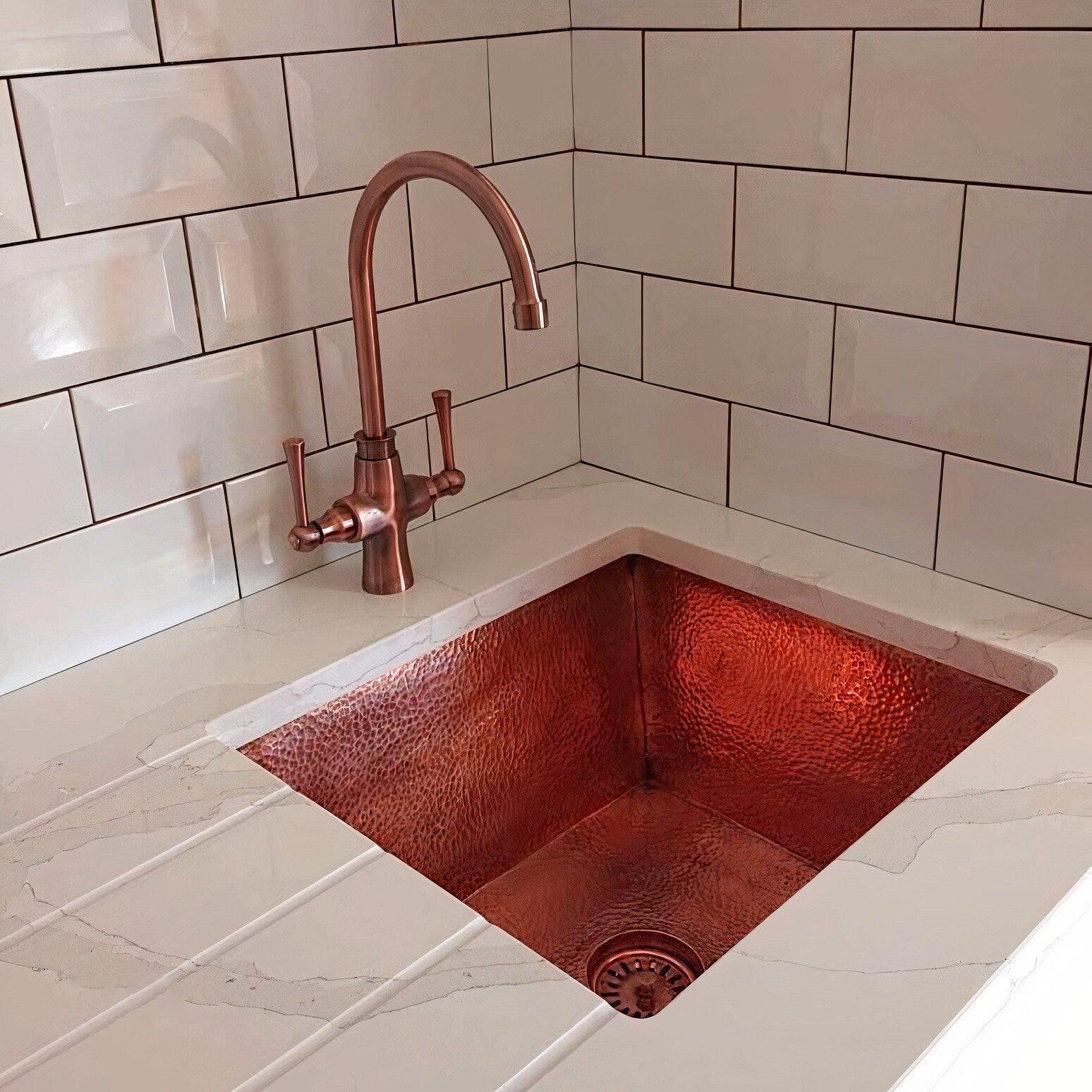 Fregadero de cobre macizo martillado, fregadero de barra de cocina, fregadero de isla
