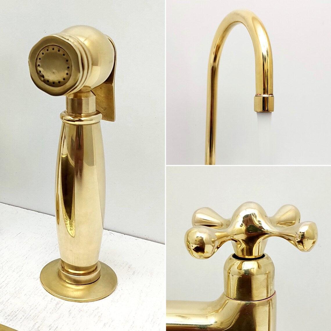 Grifo de cocina de puente con rociador en latón sin lacar - Ref: APCL-5