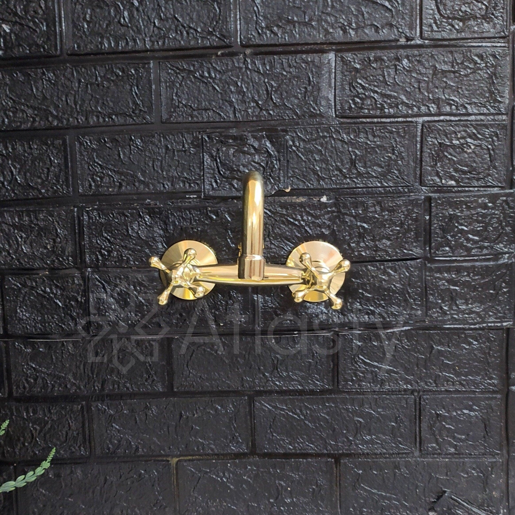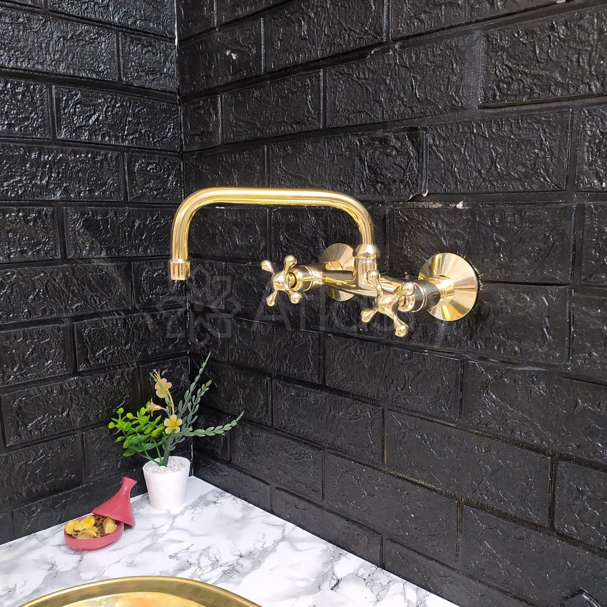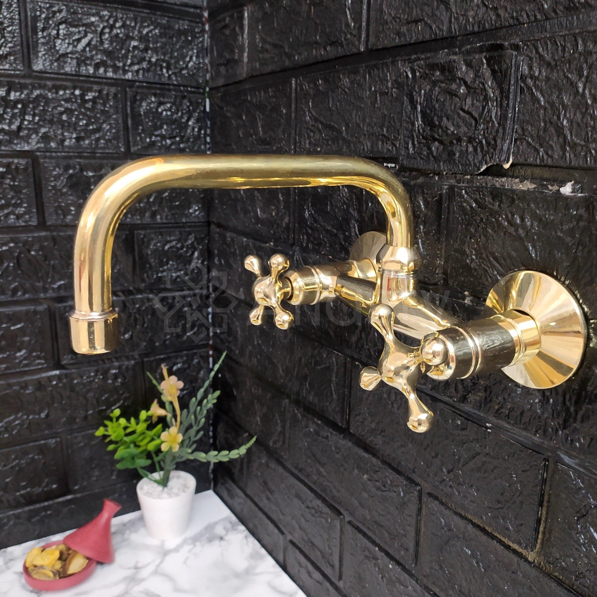 Grifo de pared de latón sin lacar, grifo de cuello de cisne