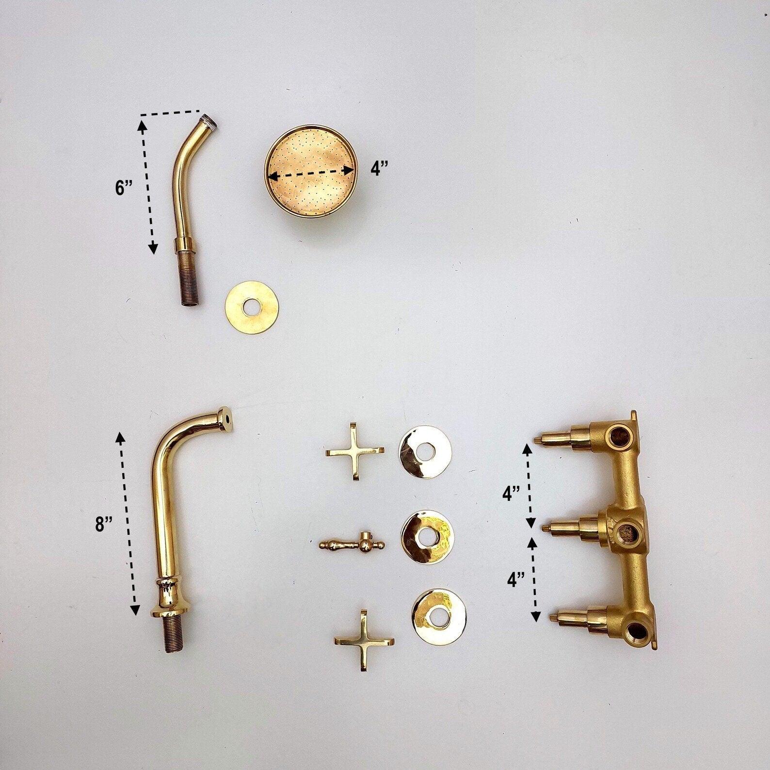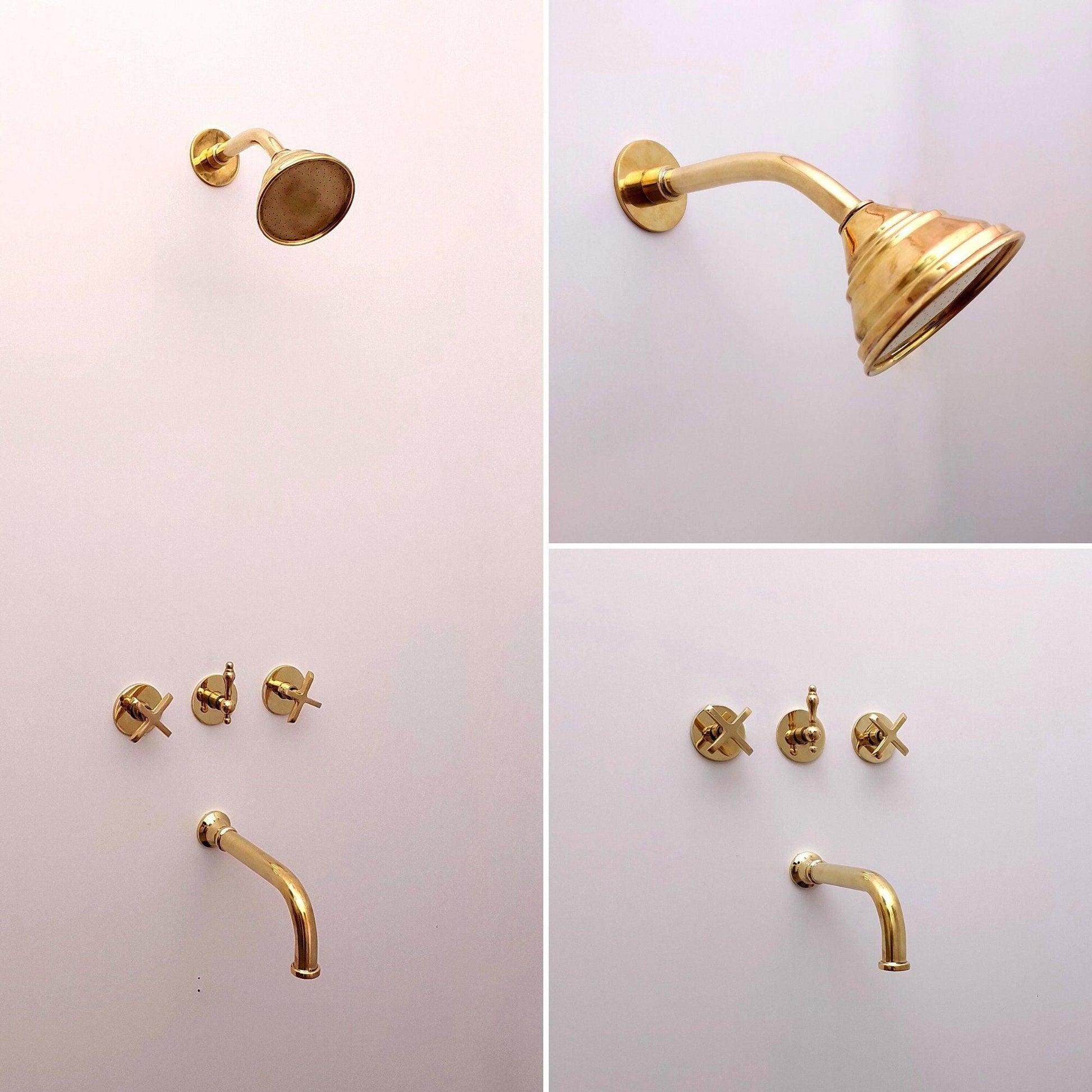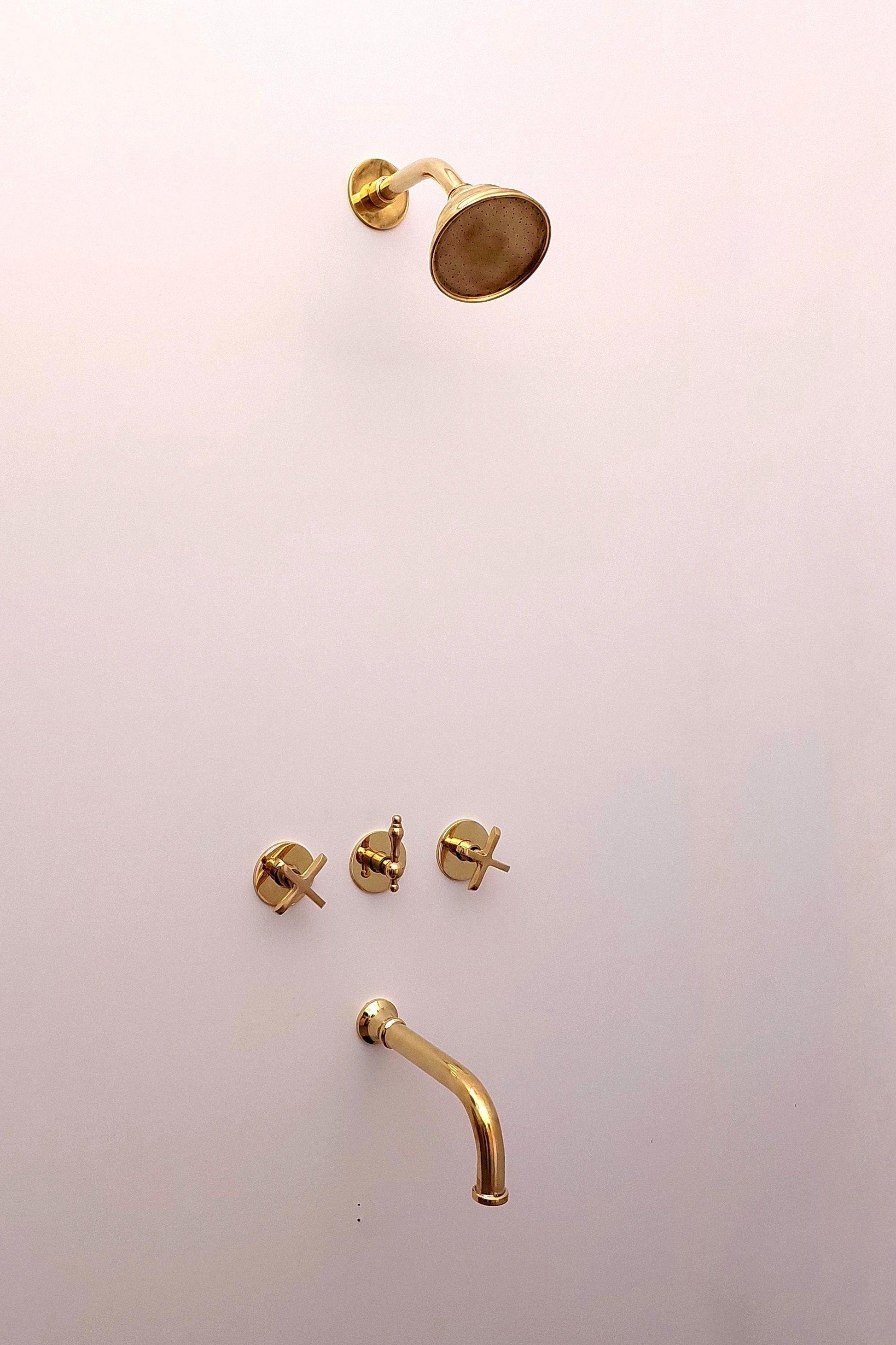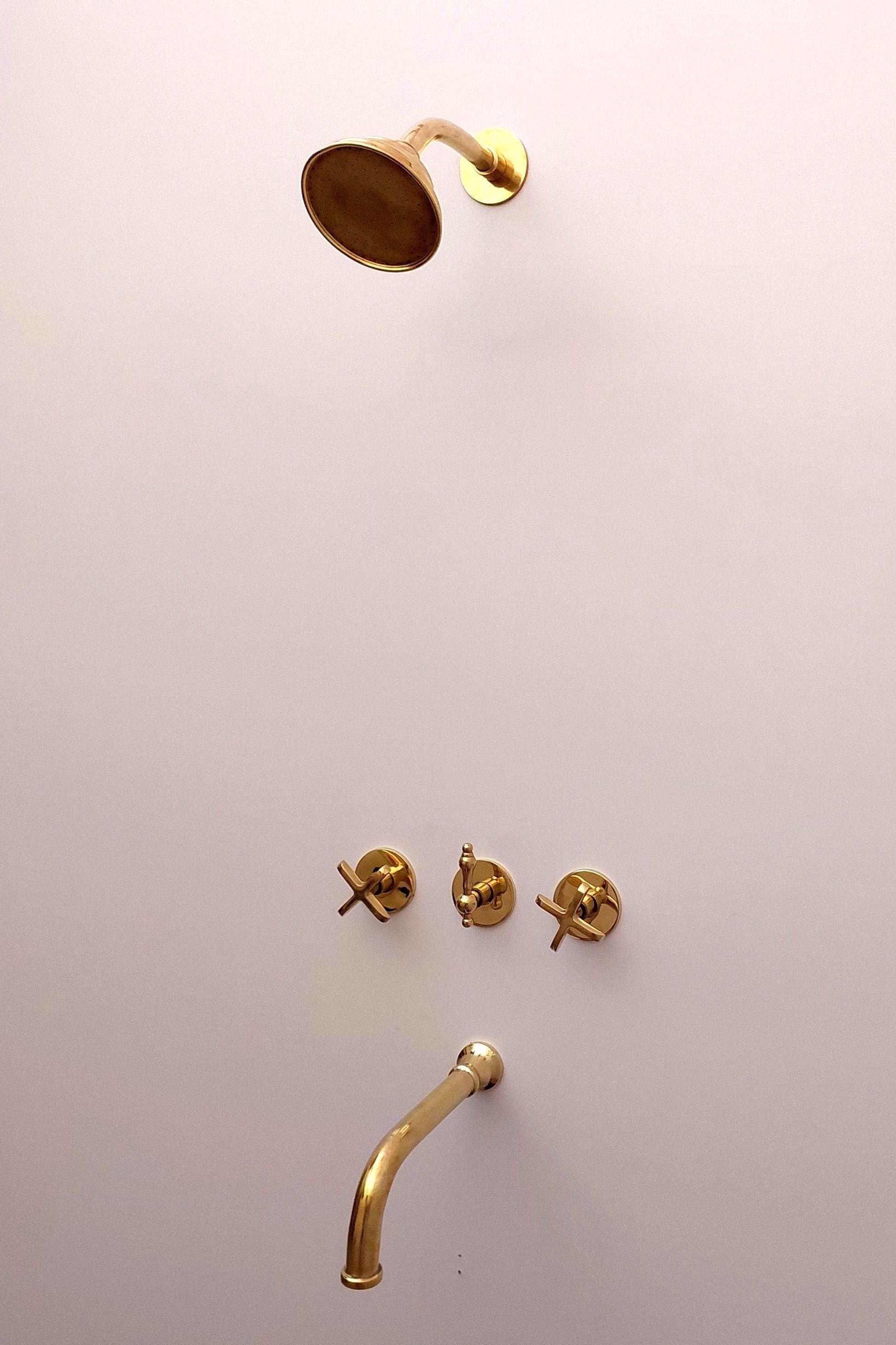 Système de douche en laiton non laqué avec bec verseur et pomme de douche ronde - Réf : ATLASS34
