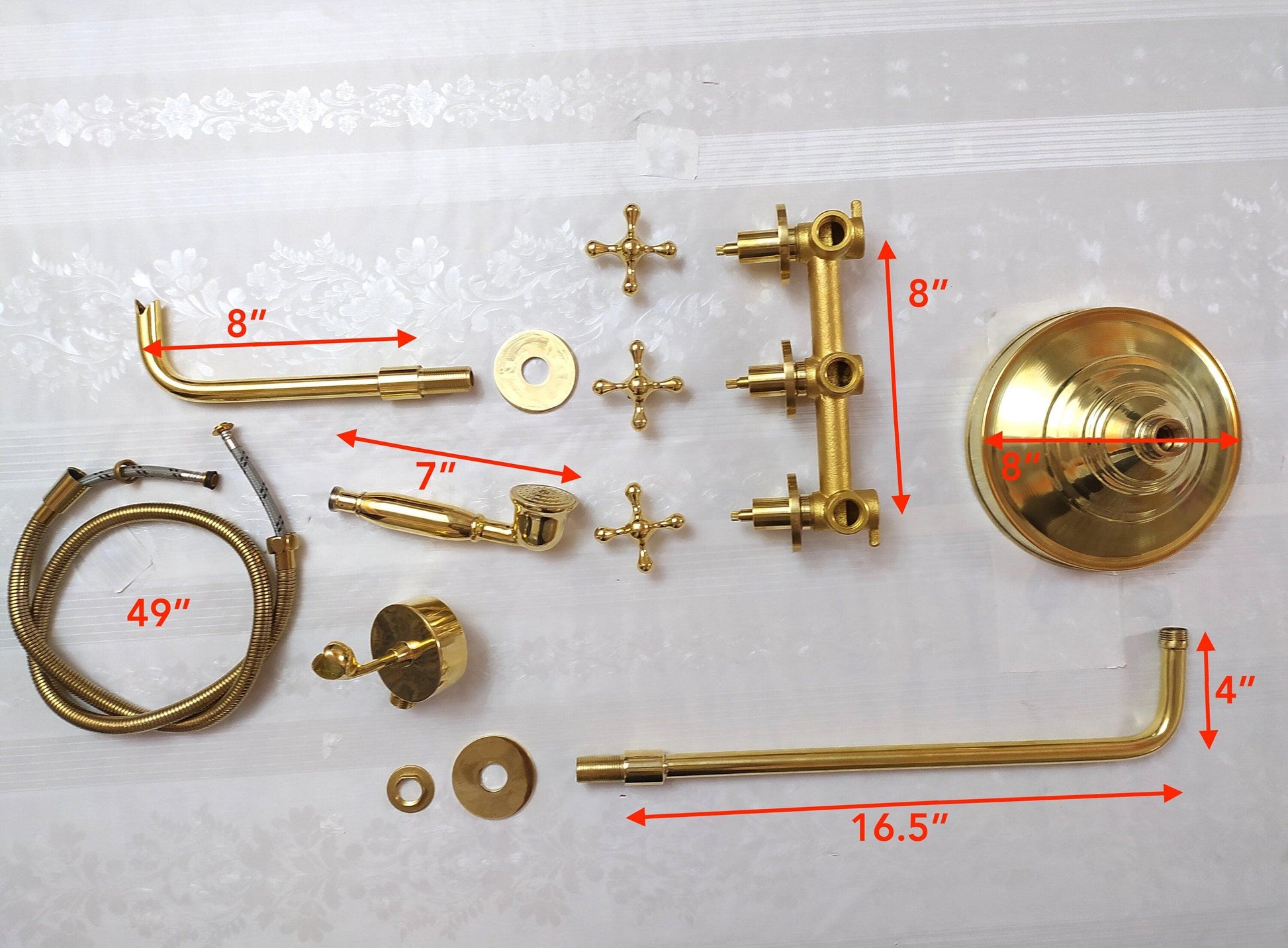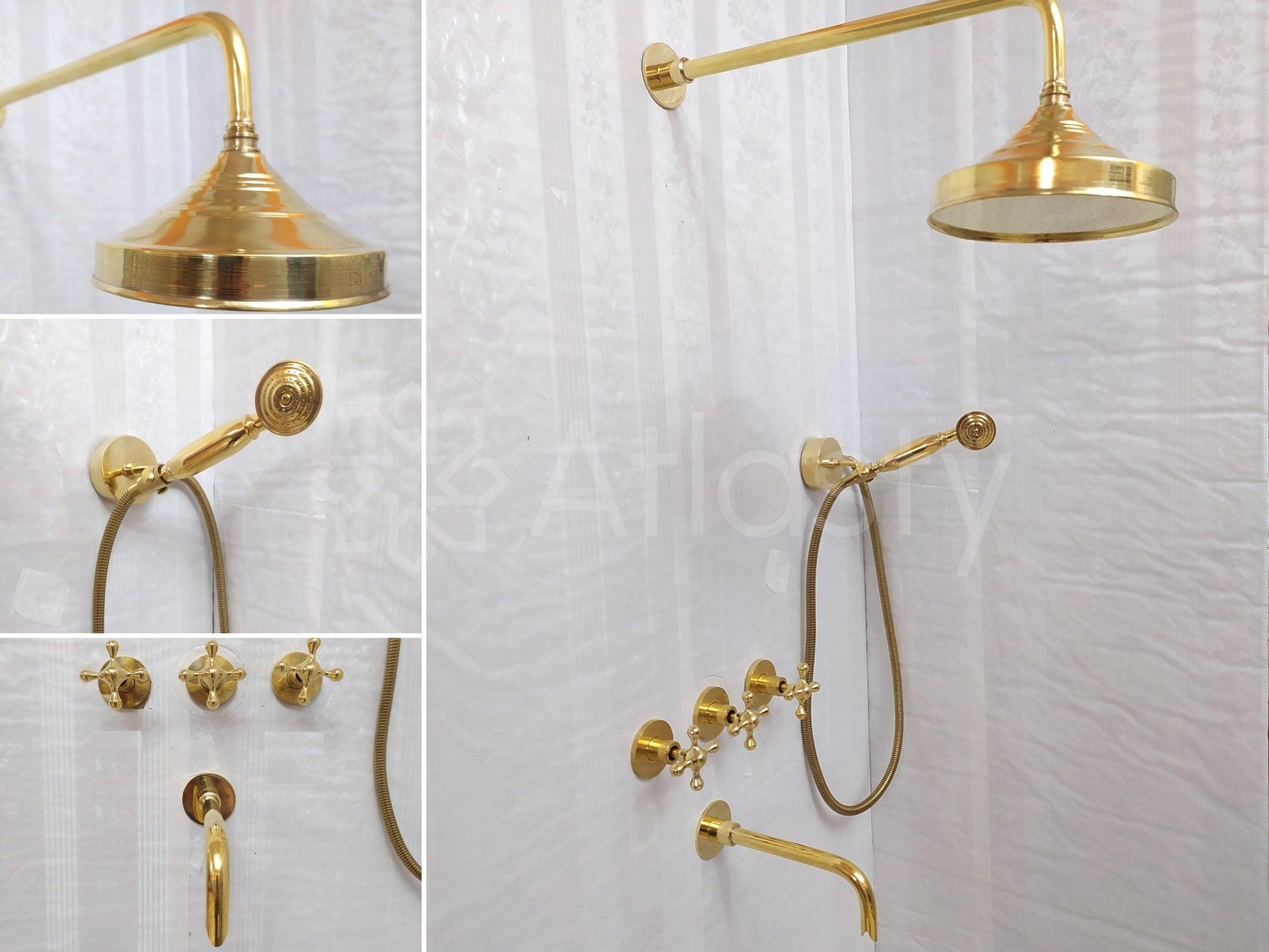 Antique Brass Shower System with Round Shower Head, Bath Faucet, Handheld Shower, and 3 Handles - Ref: ATLASS15