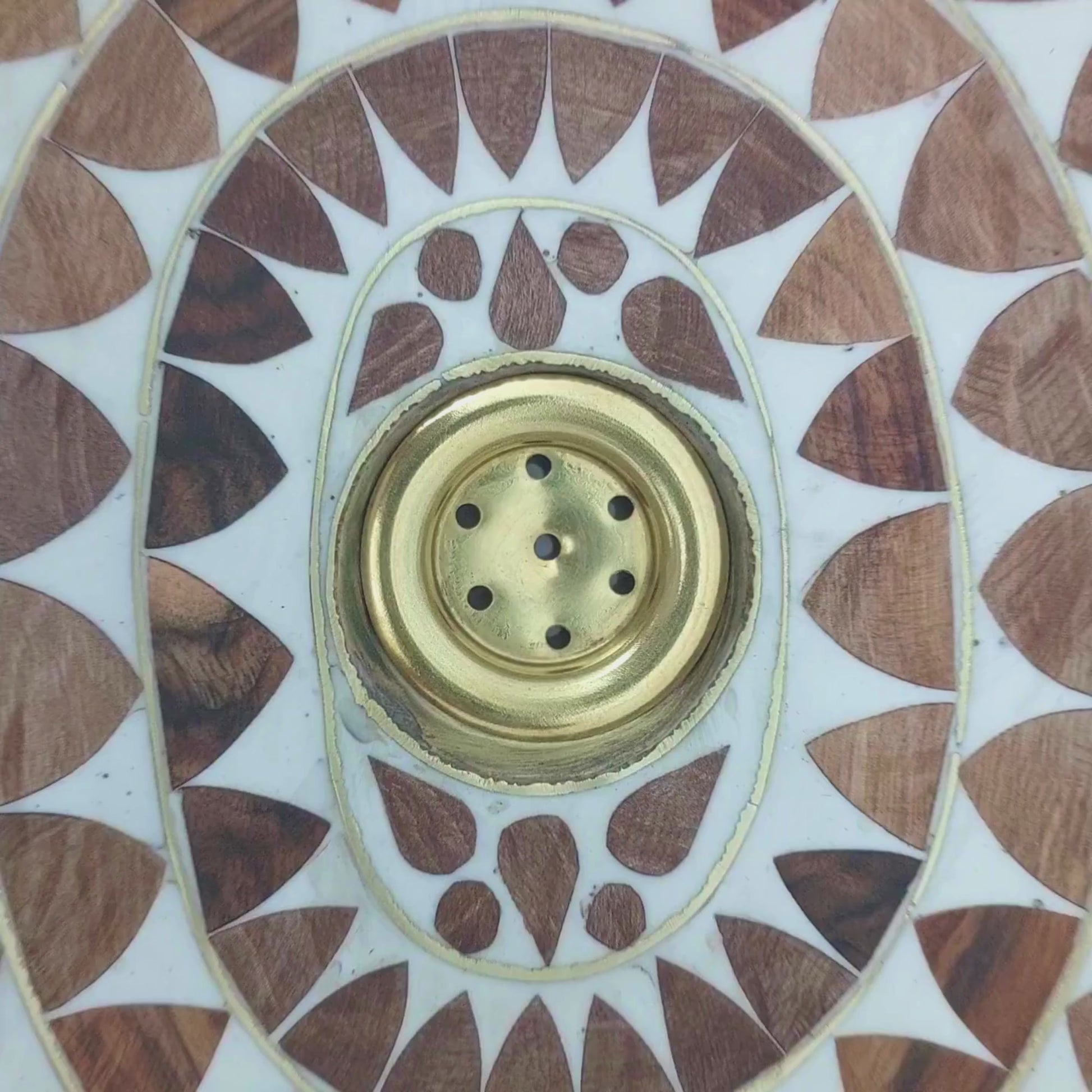 Enhance your bathroom with this unique Brass Oval Drop-in Sink, a beautifully crafted piece featuring a sophisticated White and Brown Pattern. Combining solid brass with detailed wood and resin accents, this sink brings an artisanal touch to your space. The studded pattern embedded in the brass adds texture and visual interest, making it a stunning focal point for any bathroom. Designed for durability and style, its oval shape and drop-in design ensure easy installation, while quality materials promise lasting beauty and functionality.