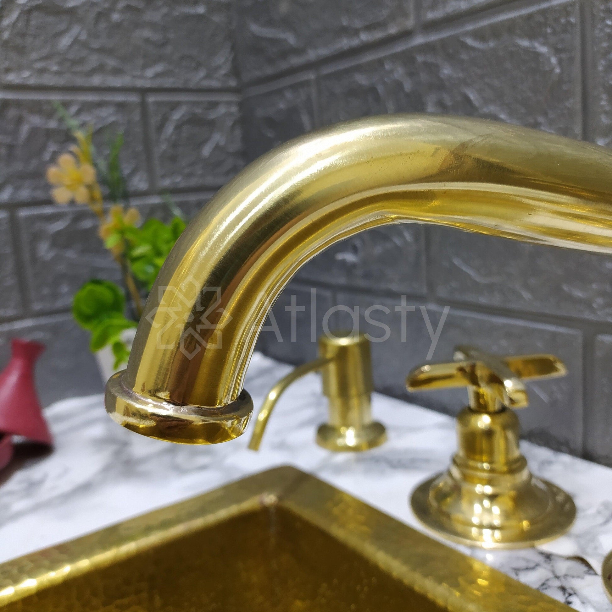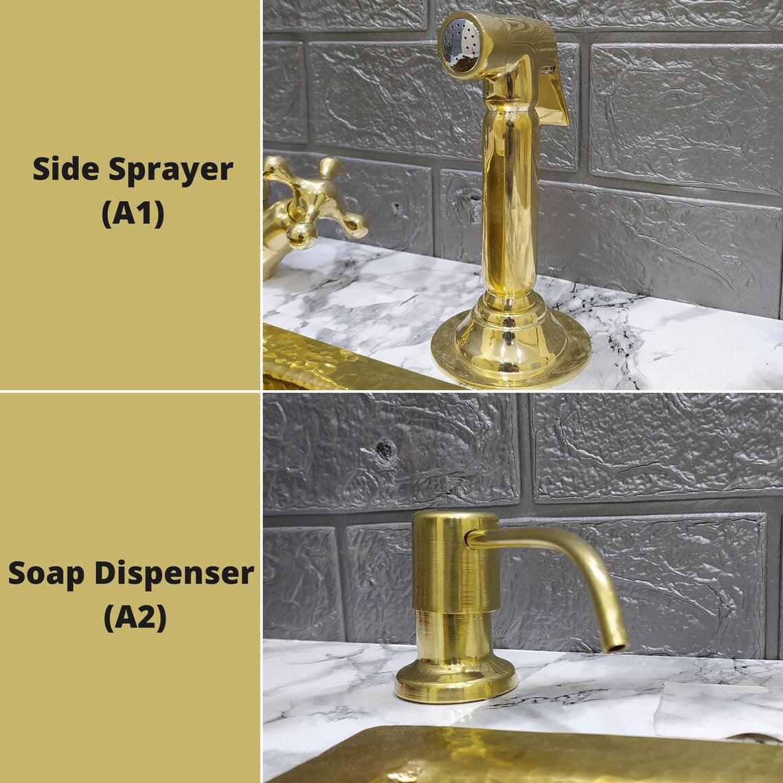Unlacquered Brass 3 Holes Faucet with Cross or Lever Handles, Sprayer, and Soap Dispenser - Timeless Design for Kitchen or Bathroom
