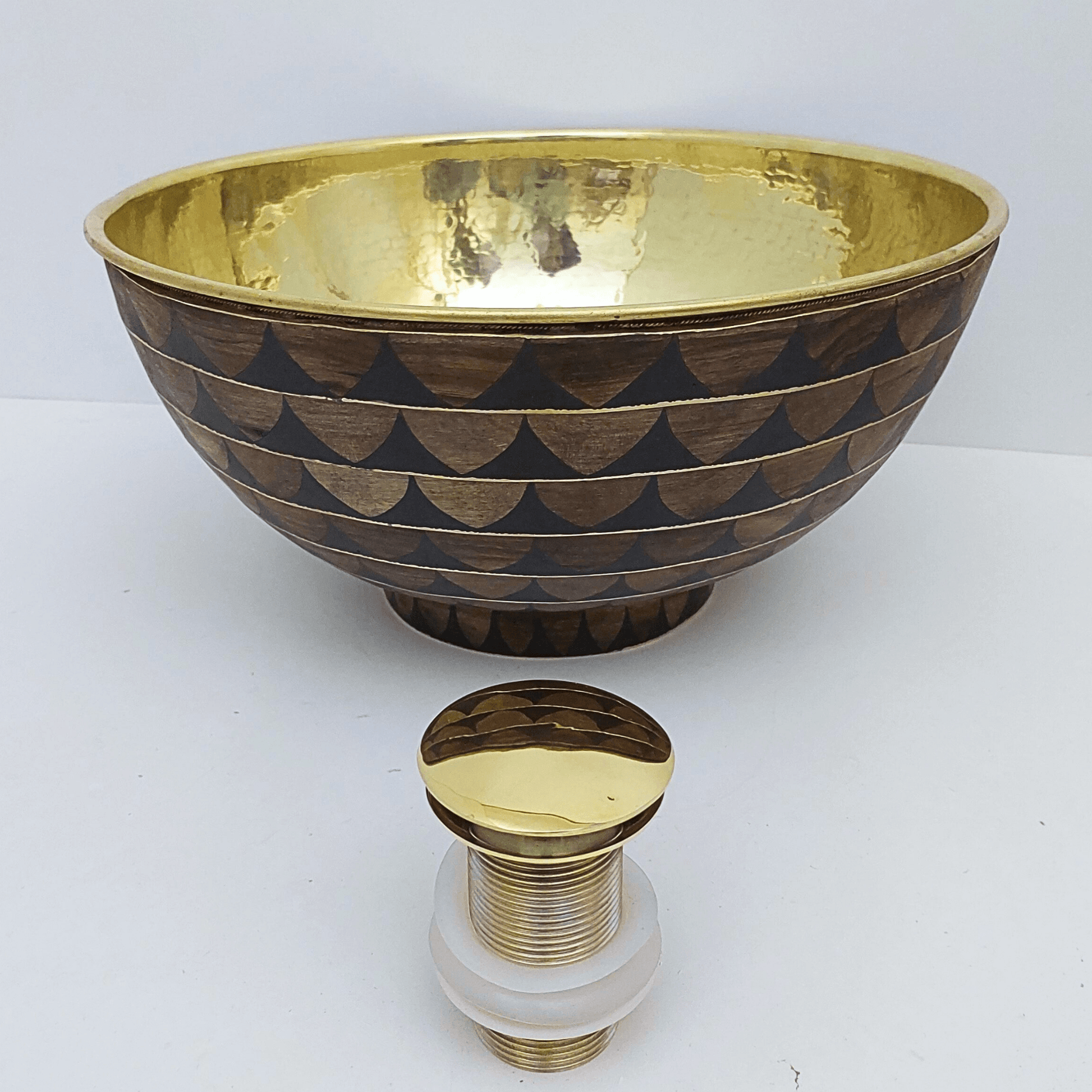 Unlacquered Brass and Resin Bathroom Sink, Bone and Wood Vanity Vessel Sink - Ref: SN018