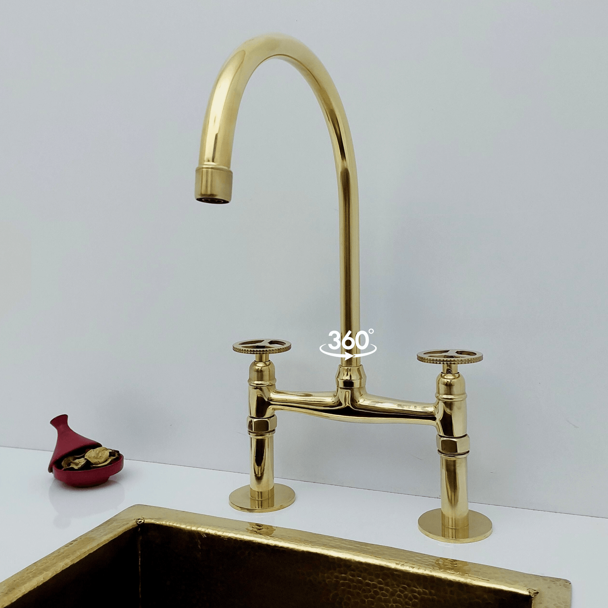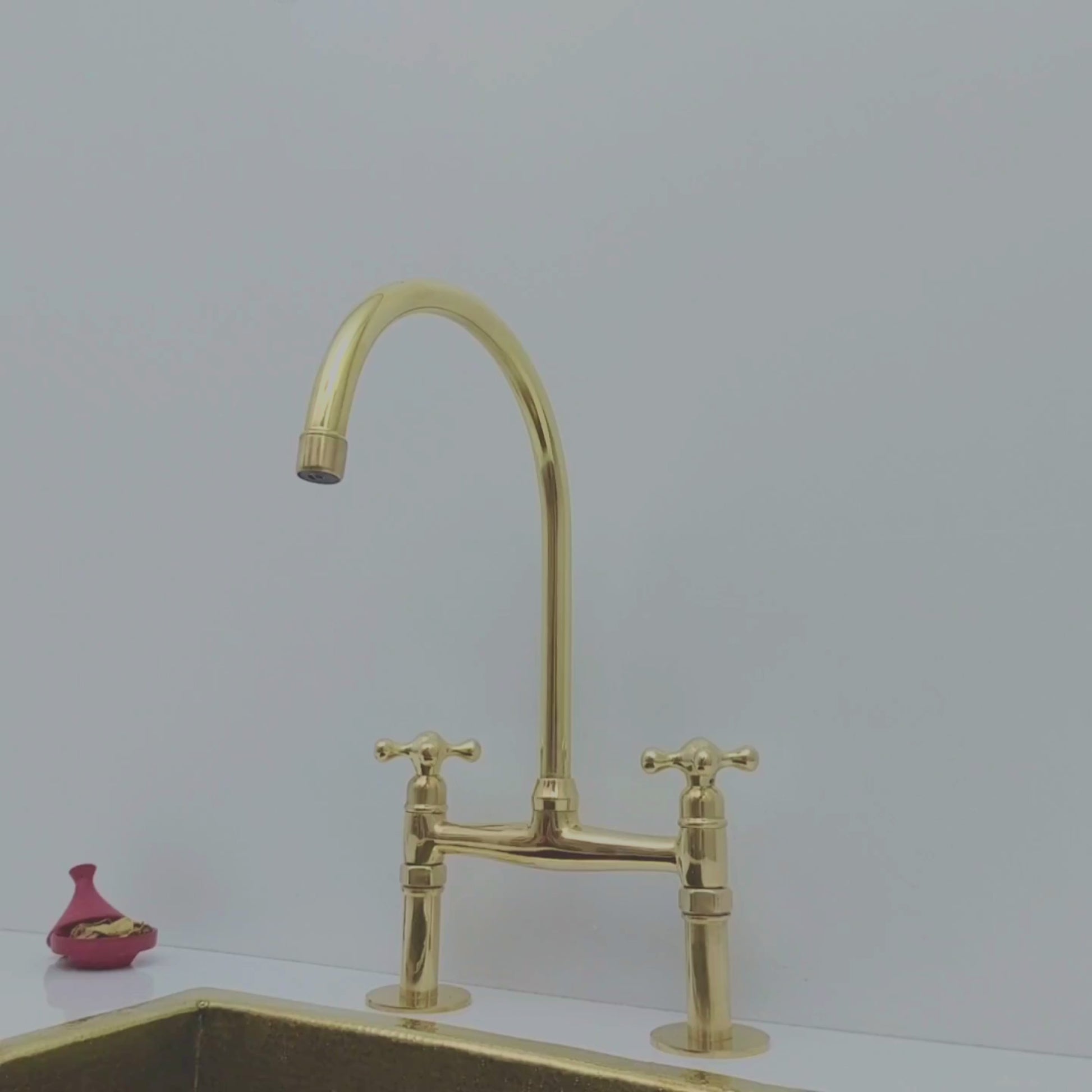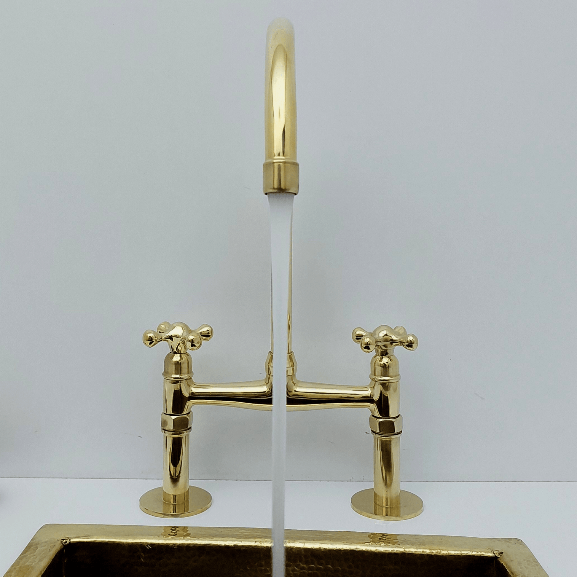 Unlacquered Brass Bridge Kitchen Faucet with Cross Handles - Ref: BF2LCB001