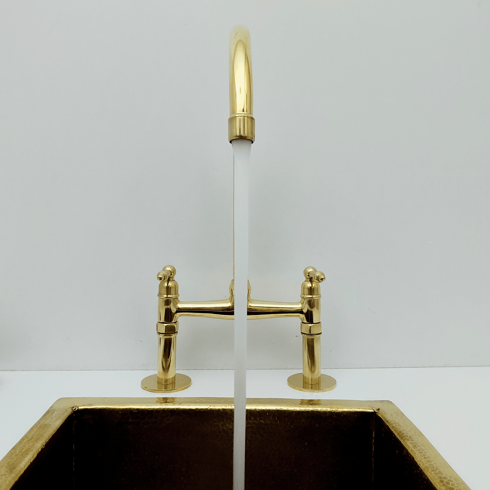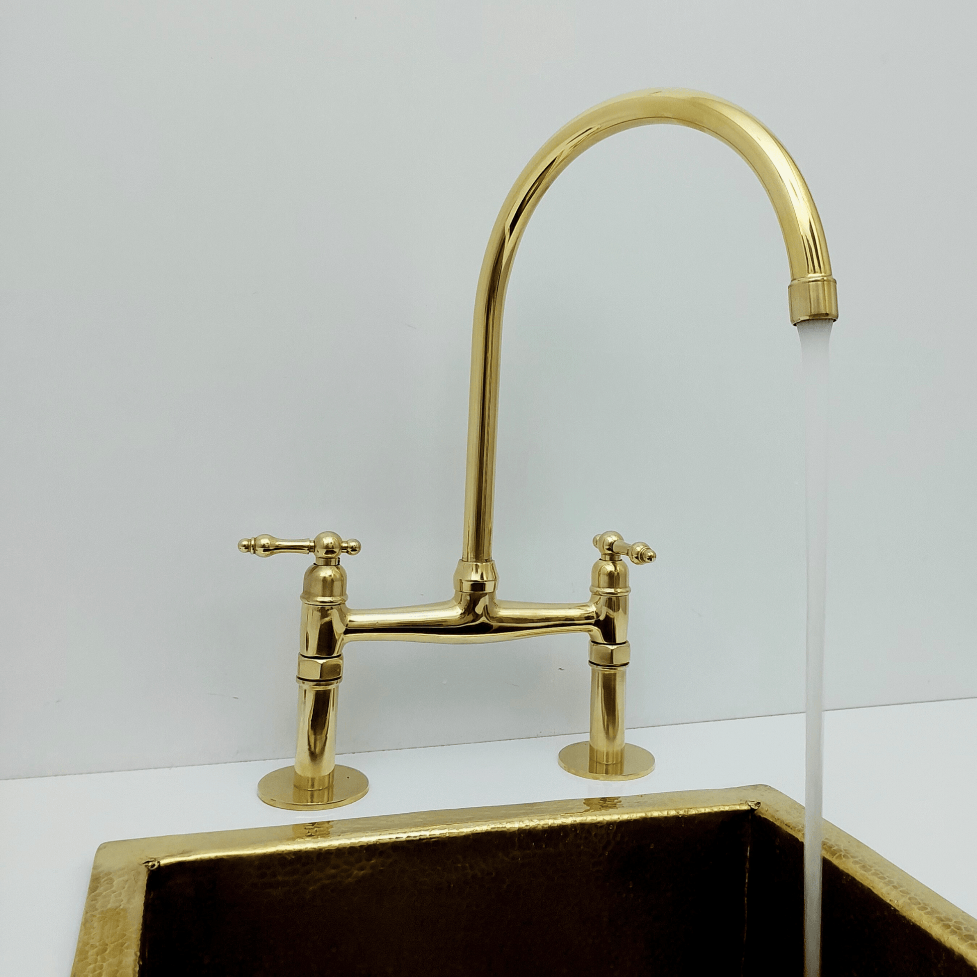 Unlacquered Brass Bridge Kitchen Faucet with Lever Handles - Ref: BF2LLB001