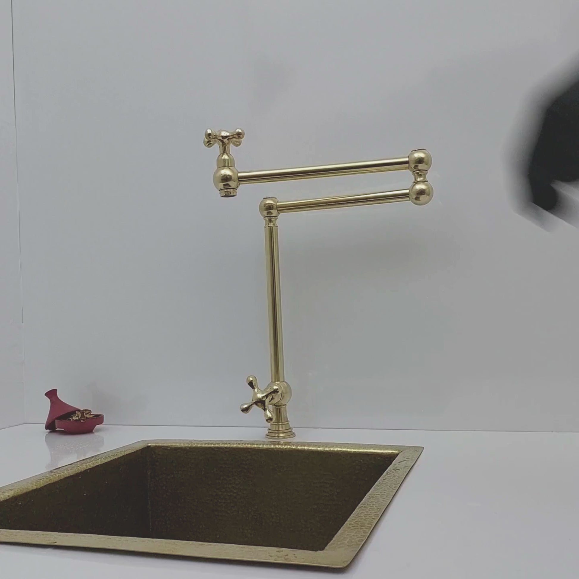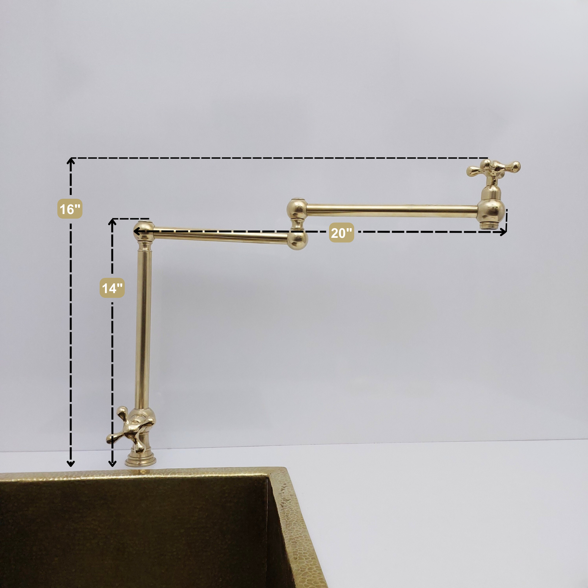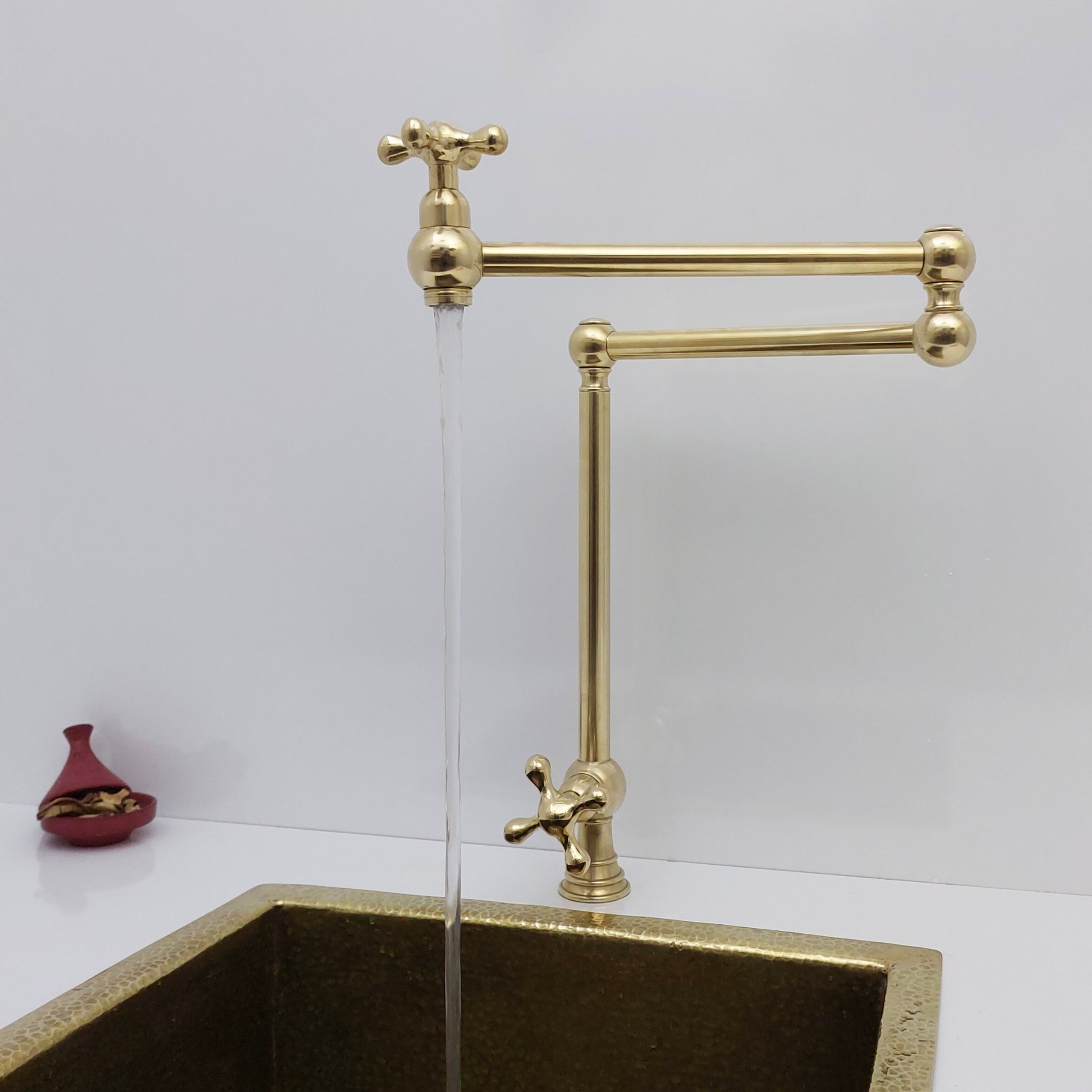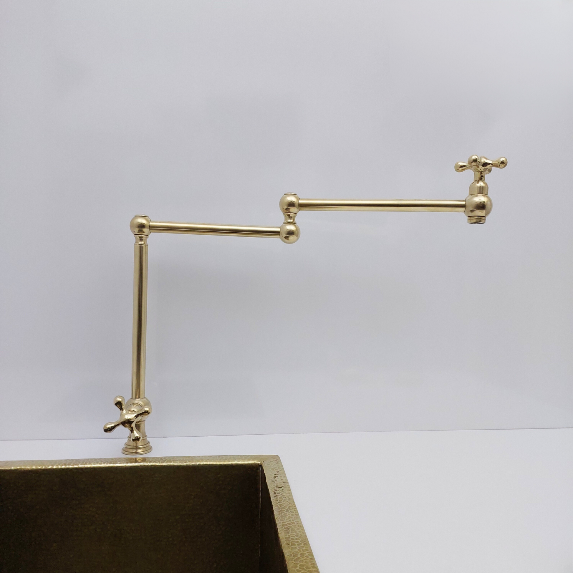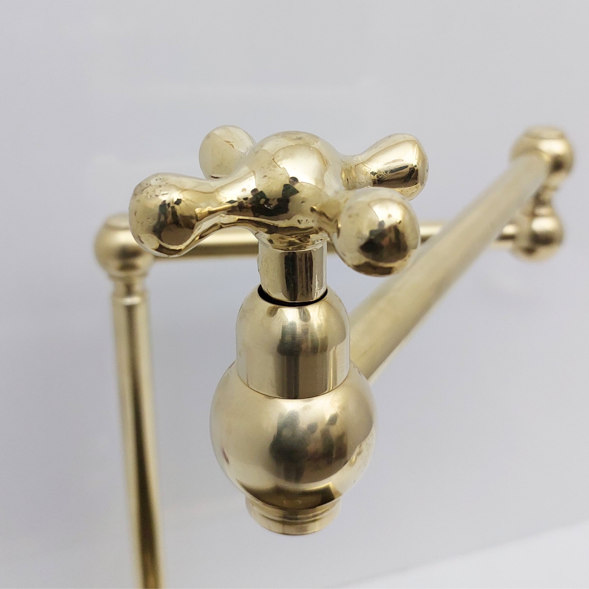 Unlacquered Brass Double Joint Pot Filler, Free standing Solid Brass Pot Filler with Cross Handle - Ref: UBDJPF1C