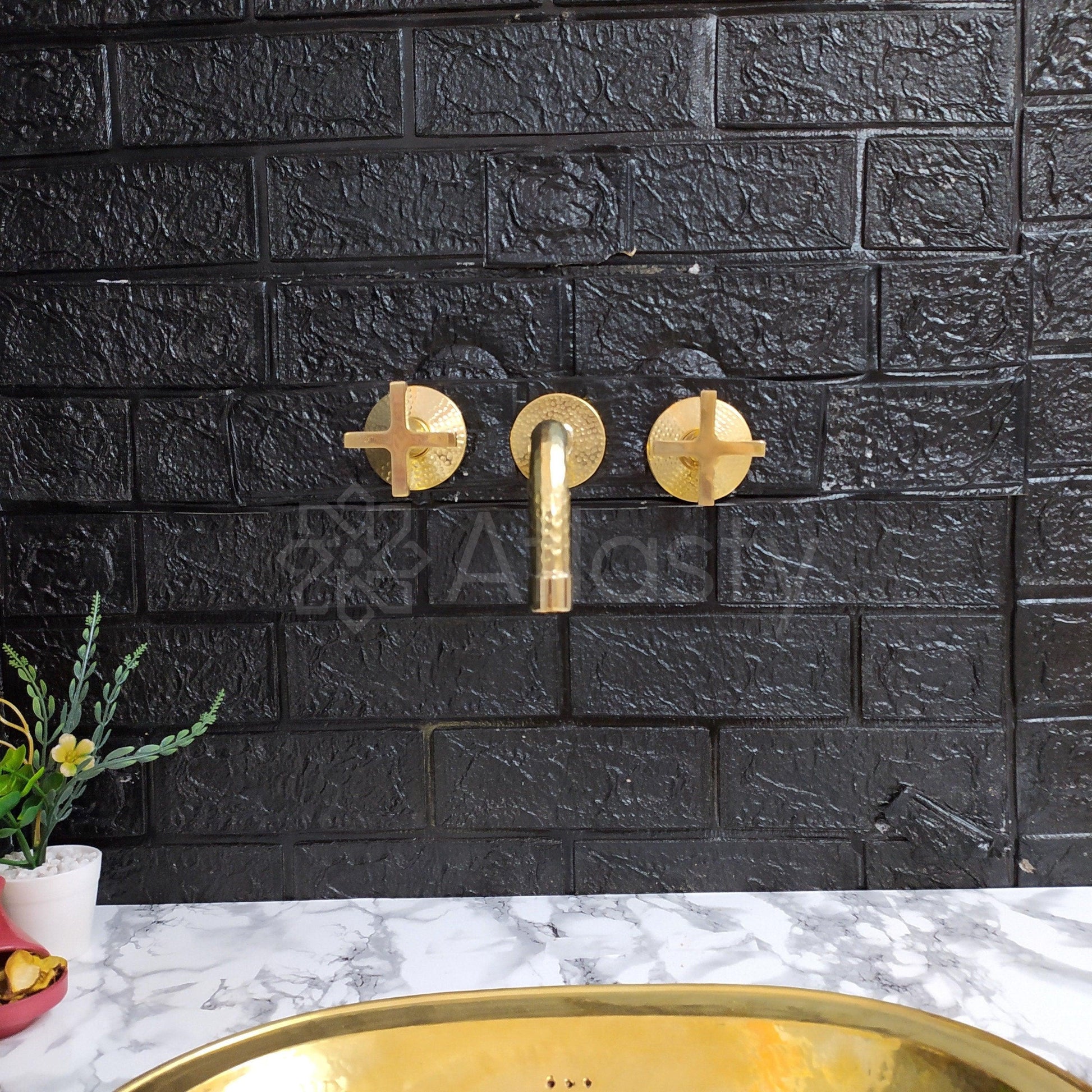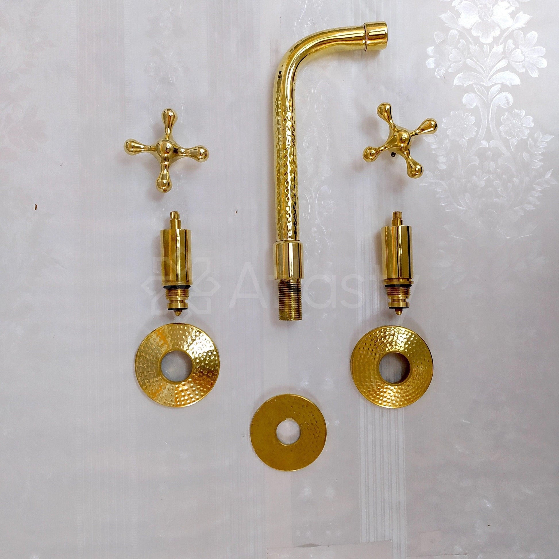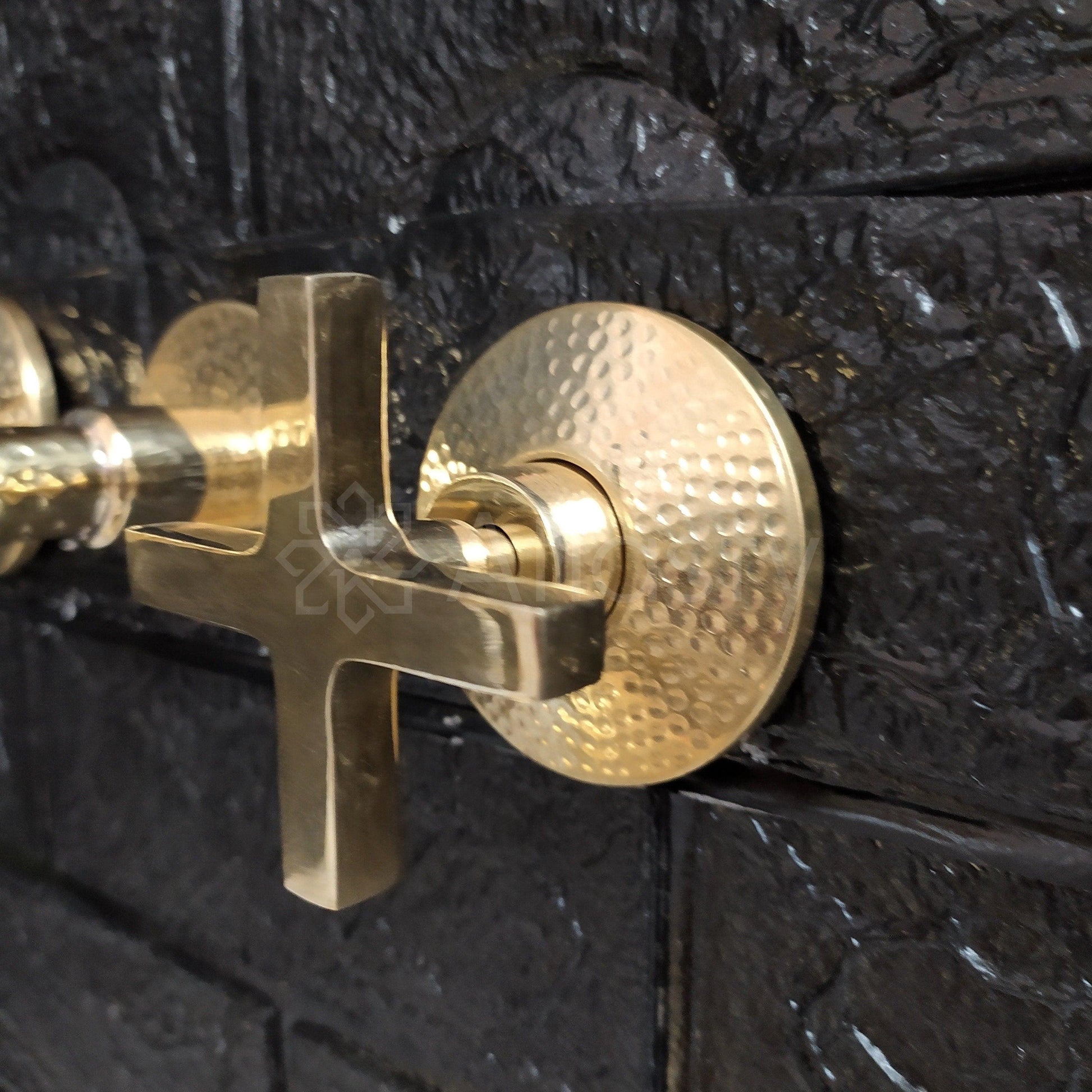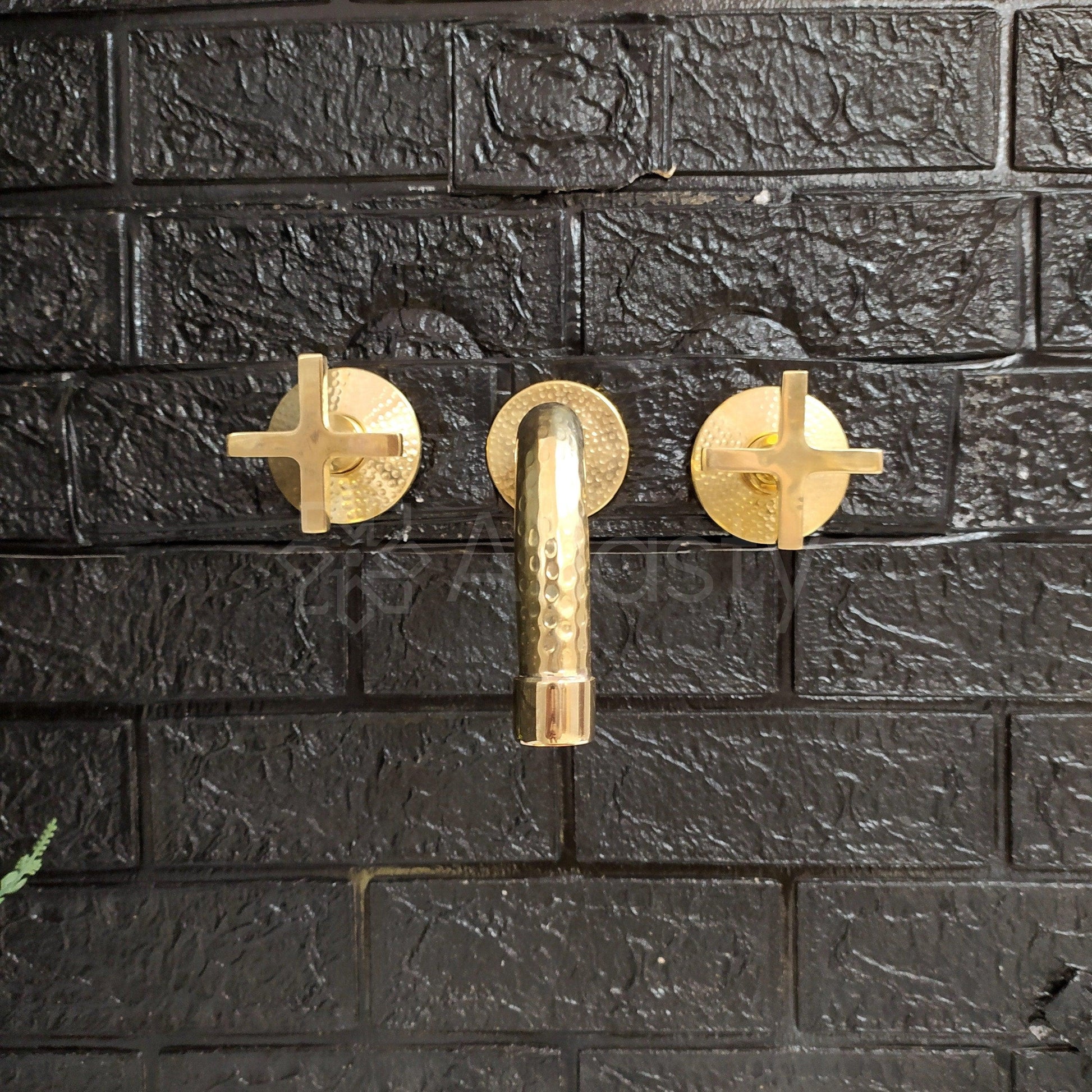 Unlacquered Brass Hammered Wall Mounted Bathroom Faucet - Vessel Sink Faucet with Cross or Lever Handles