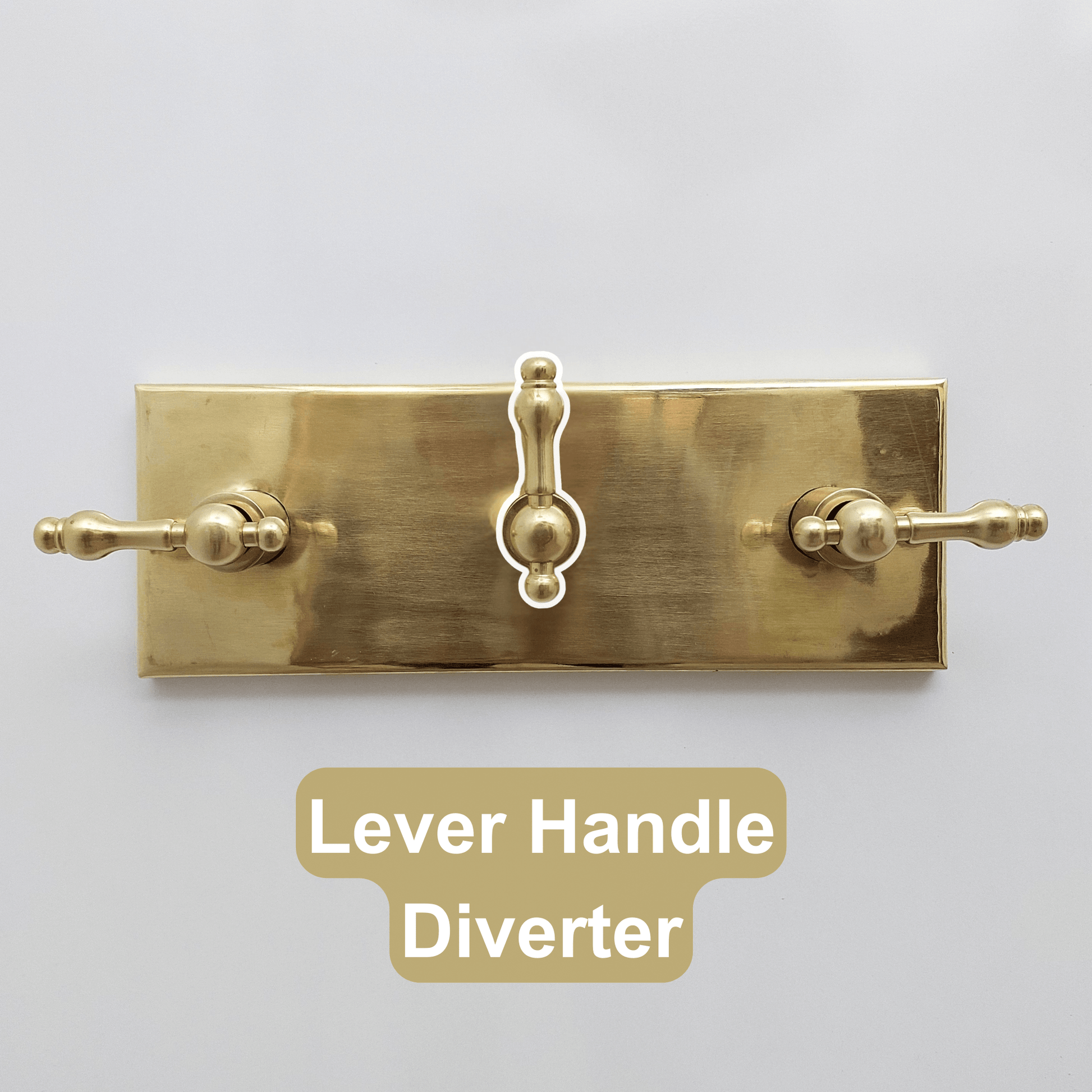 Unlacquered Brass Shower System with Central Brass Plaque and Lever Handles, Bridge Arm Round Rain Shower Head - Ref: SSPH-UBL