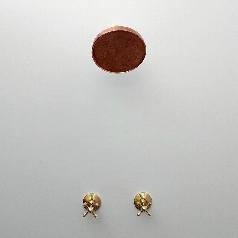Unlacquered Brass Shower System with Copper Round Rain Shower Head Ref - ATLASS32
