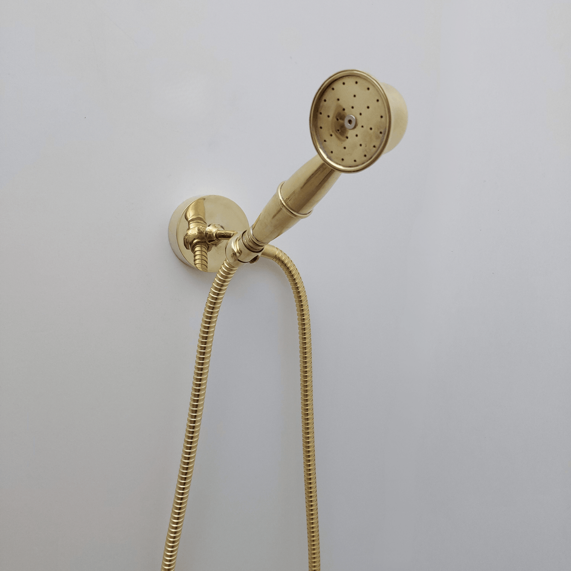 Unlacquered Brass Shower System with Handheld Shower Head and Round Rain Shower Head - Ref: ATLASS50