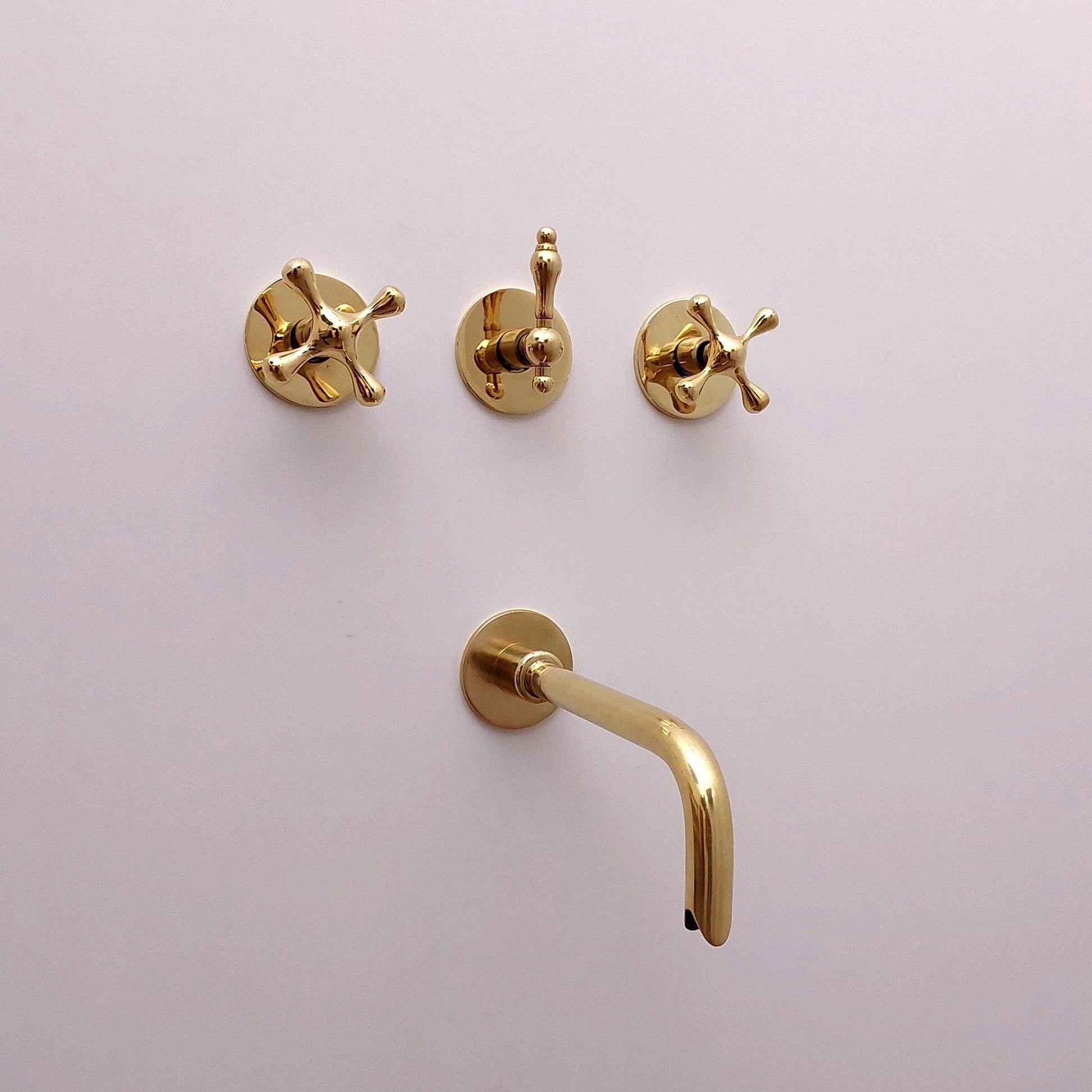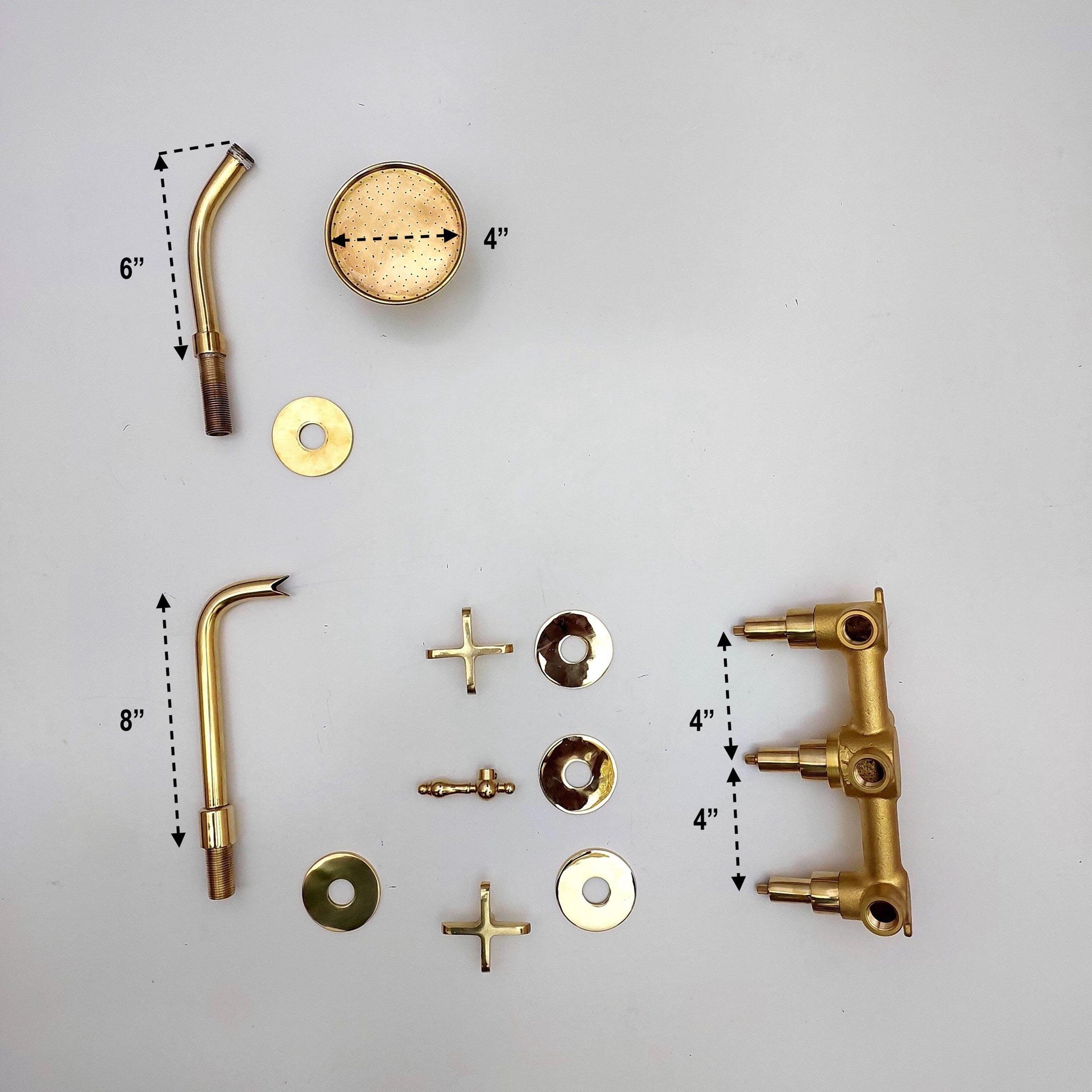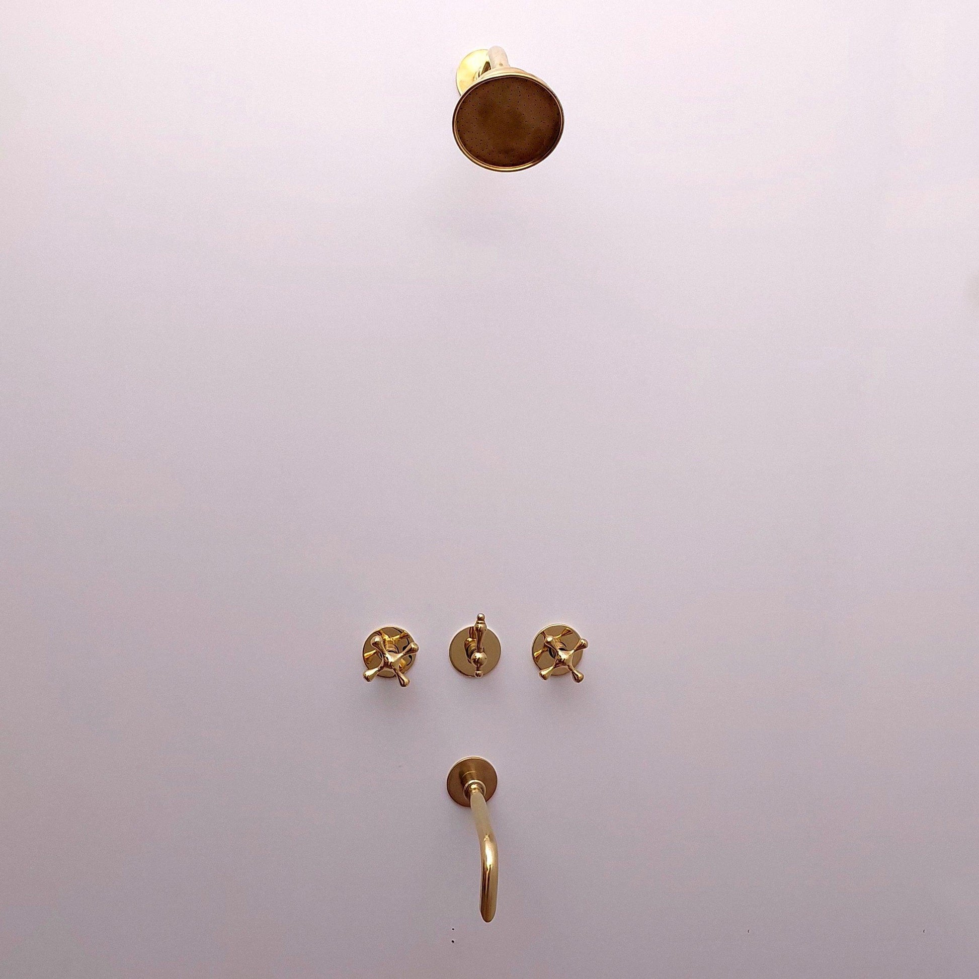 Unlacquered Brass Shower System with Tub Filler and Round Shower Head - Ref: ATLASS33