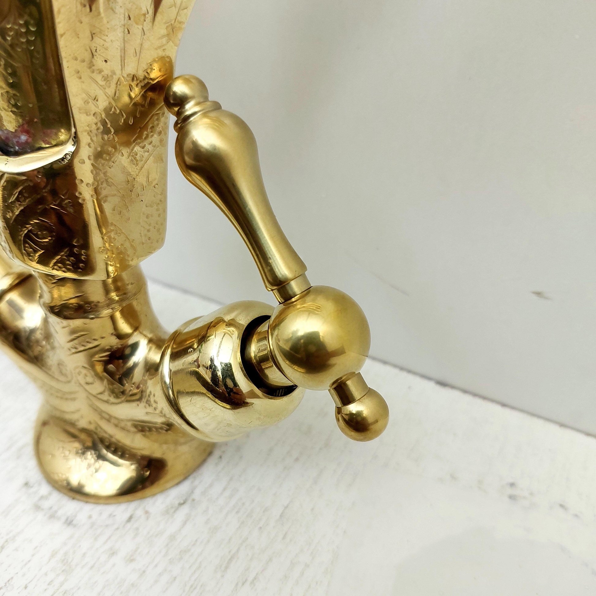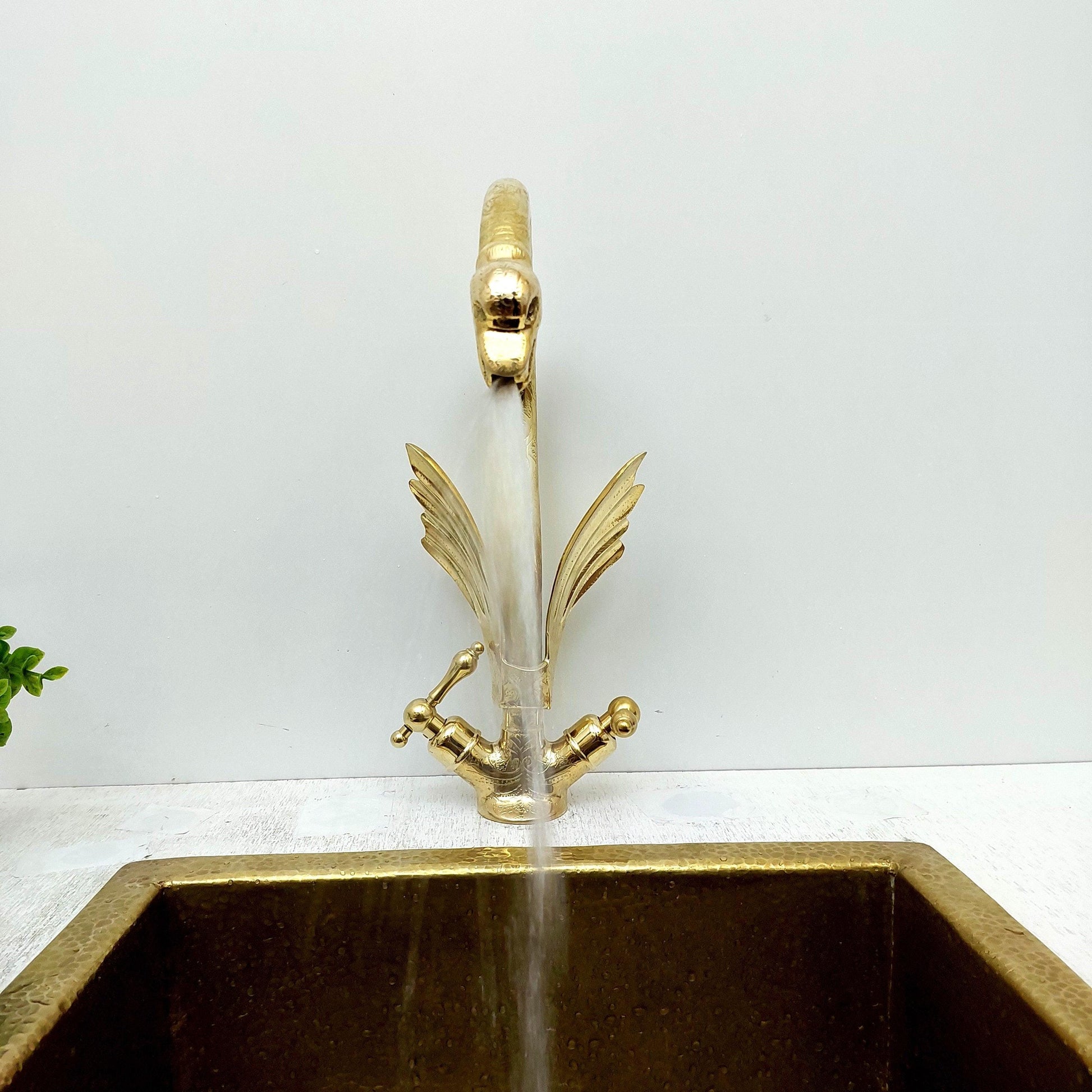 Unlacquered Brass Swan Engraved Faucet with two Lever Handles - Ref: FA010-EL