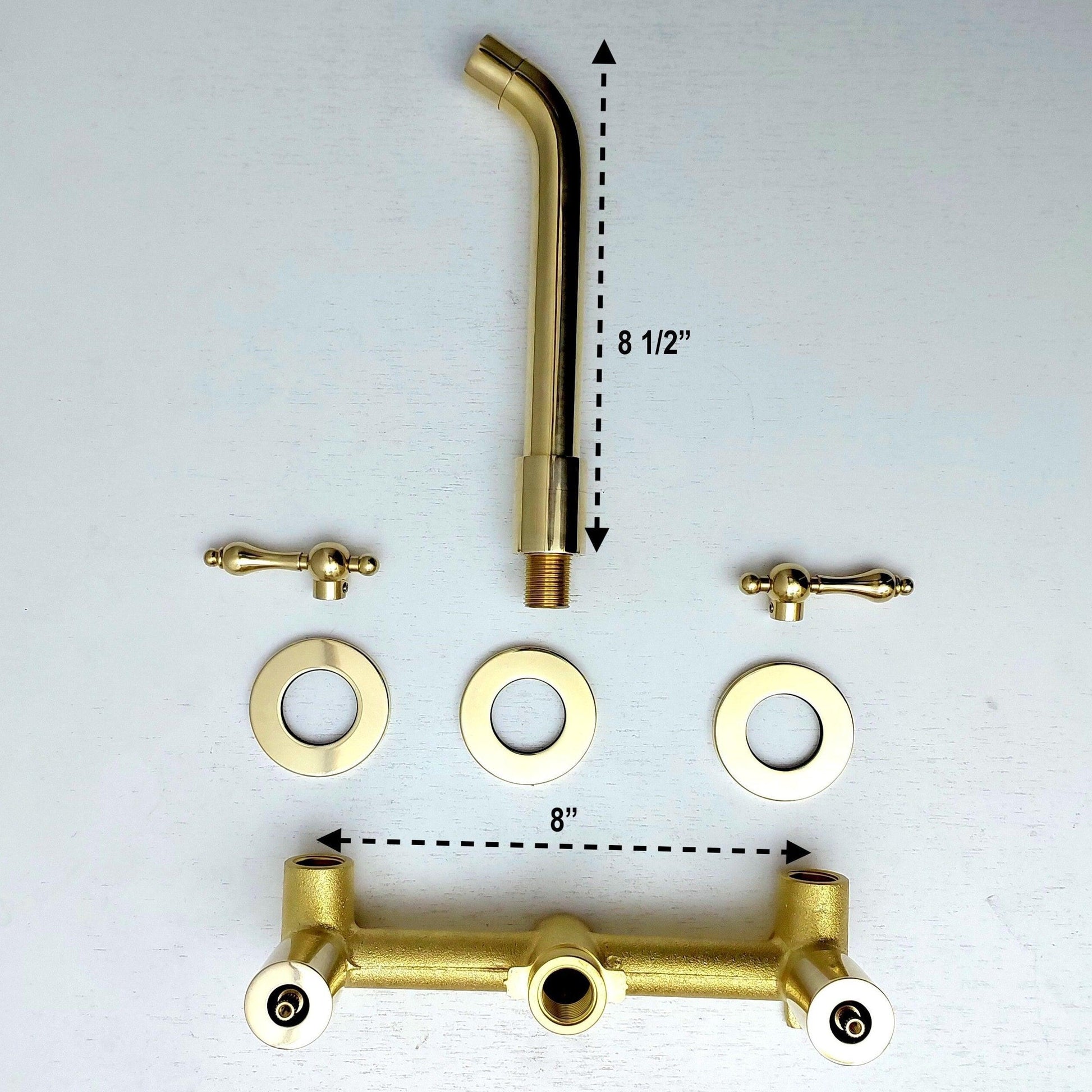 Unlacquered Brass Wall Mount Faucet, Gooseneck Faucet with Lever Handles - Ref: WFL004