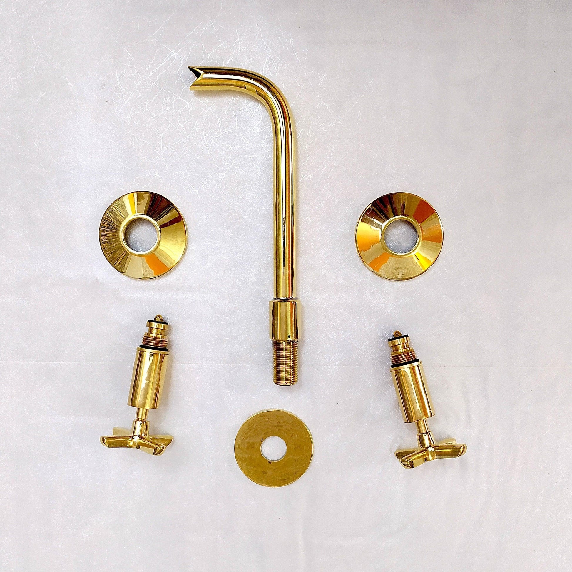 Unlacquered Brass Wall Mounted Bathroom Faucet - Vessel Sink Faucet with Cross or Lever Handles and Snake Mouth