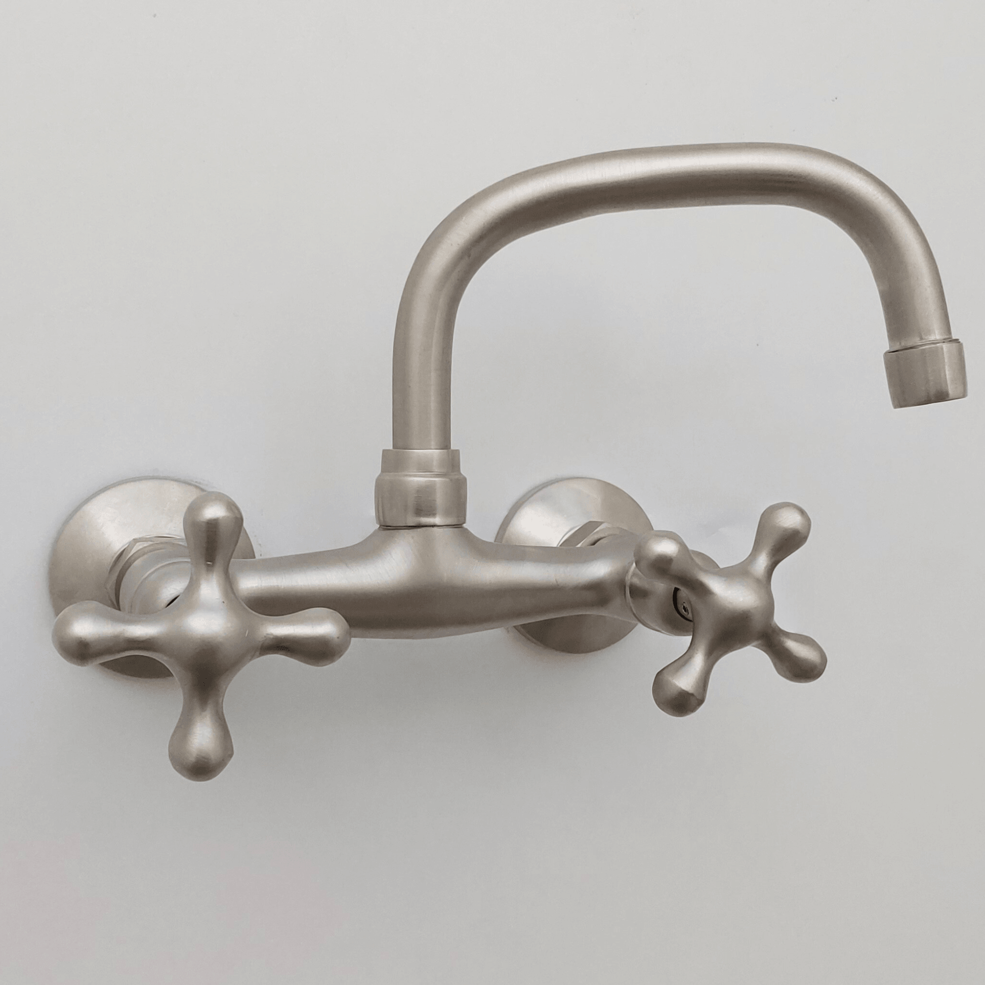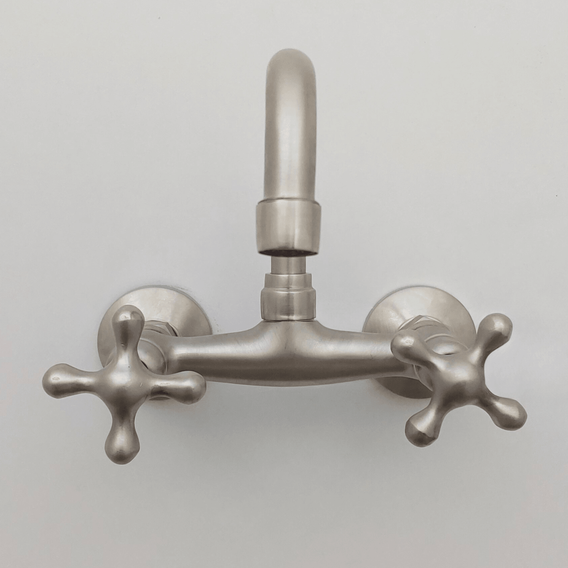 Wall Mount Brass Faucet, Brushed Nickel Finish Gooseneck Faucet with Cross Handles - Ref: WFCN002
