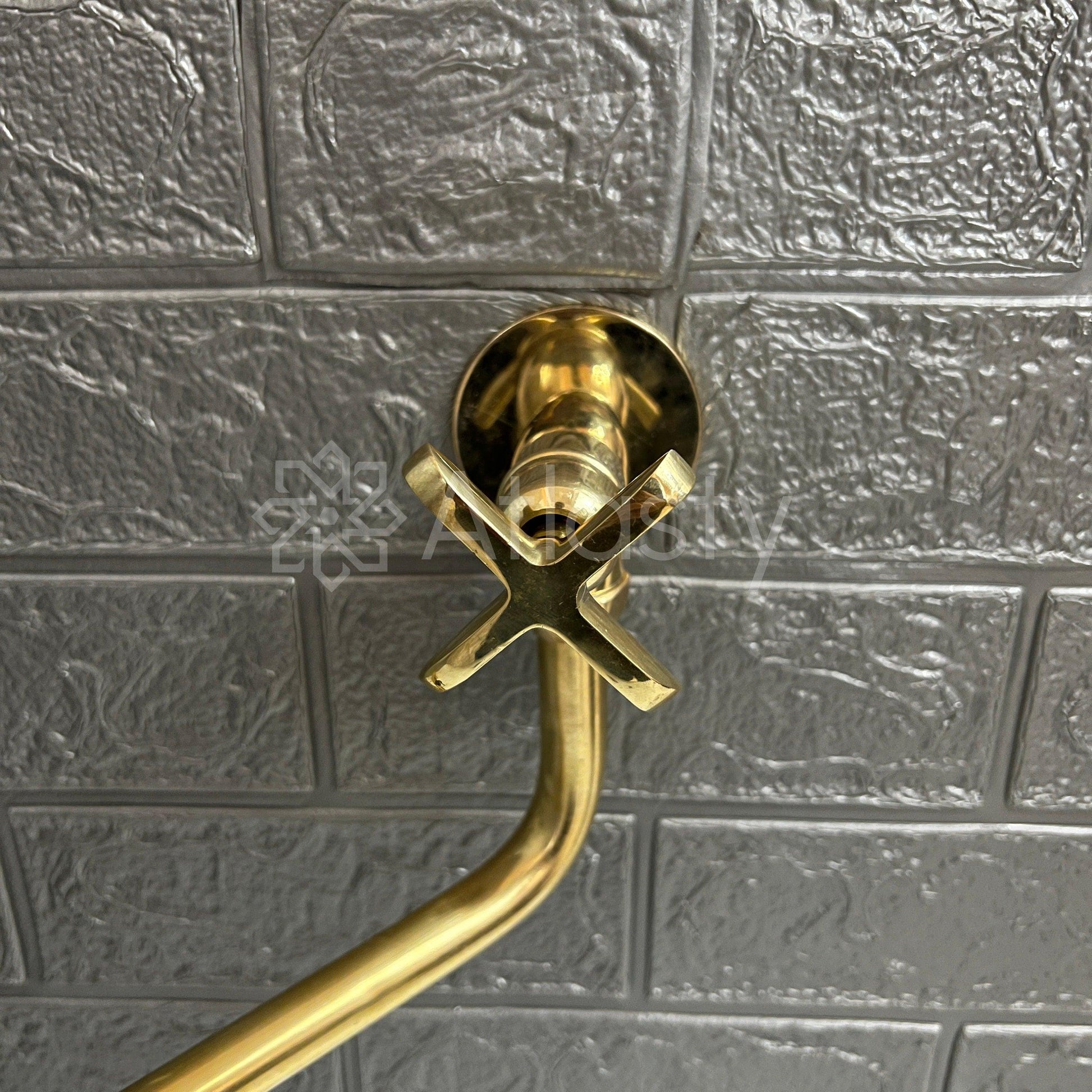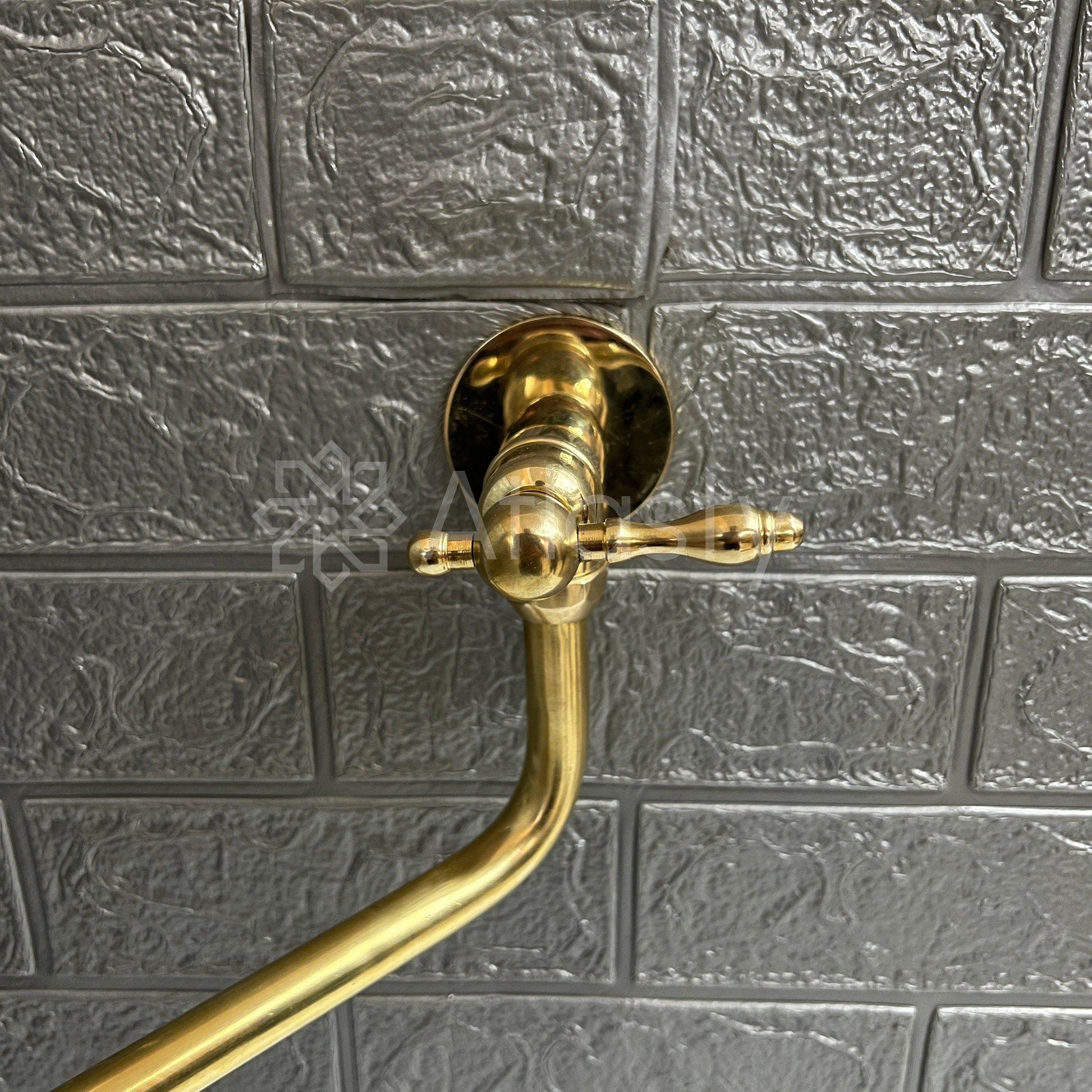 Wall Mount Pot Filler Kitchen Faucet, Unlacquered Solid Brass Pot Filler Kitchen Faucet, Antique Brass