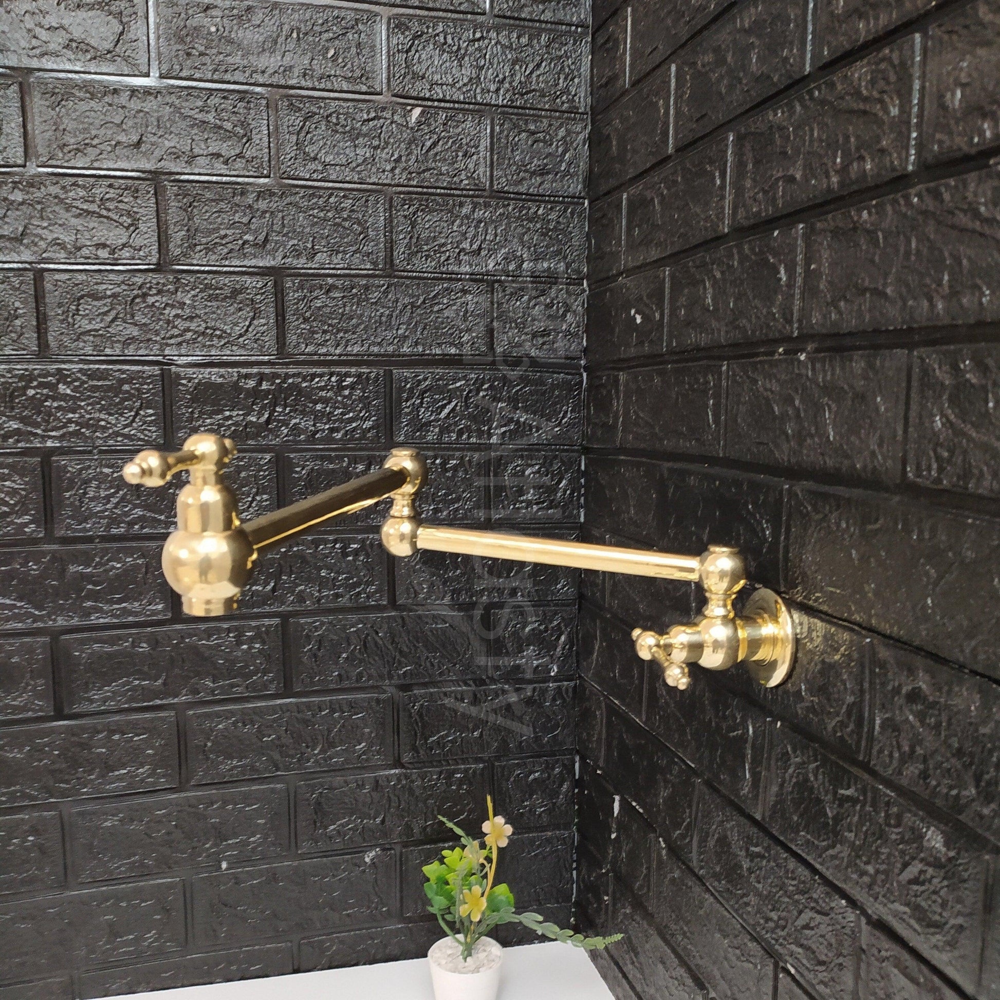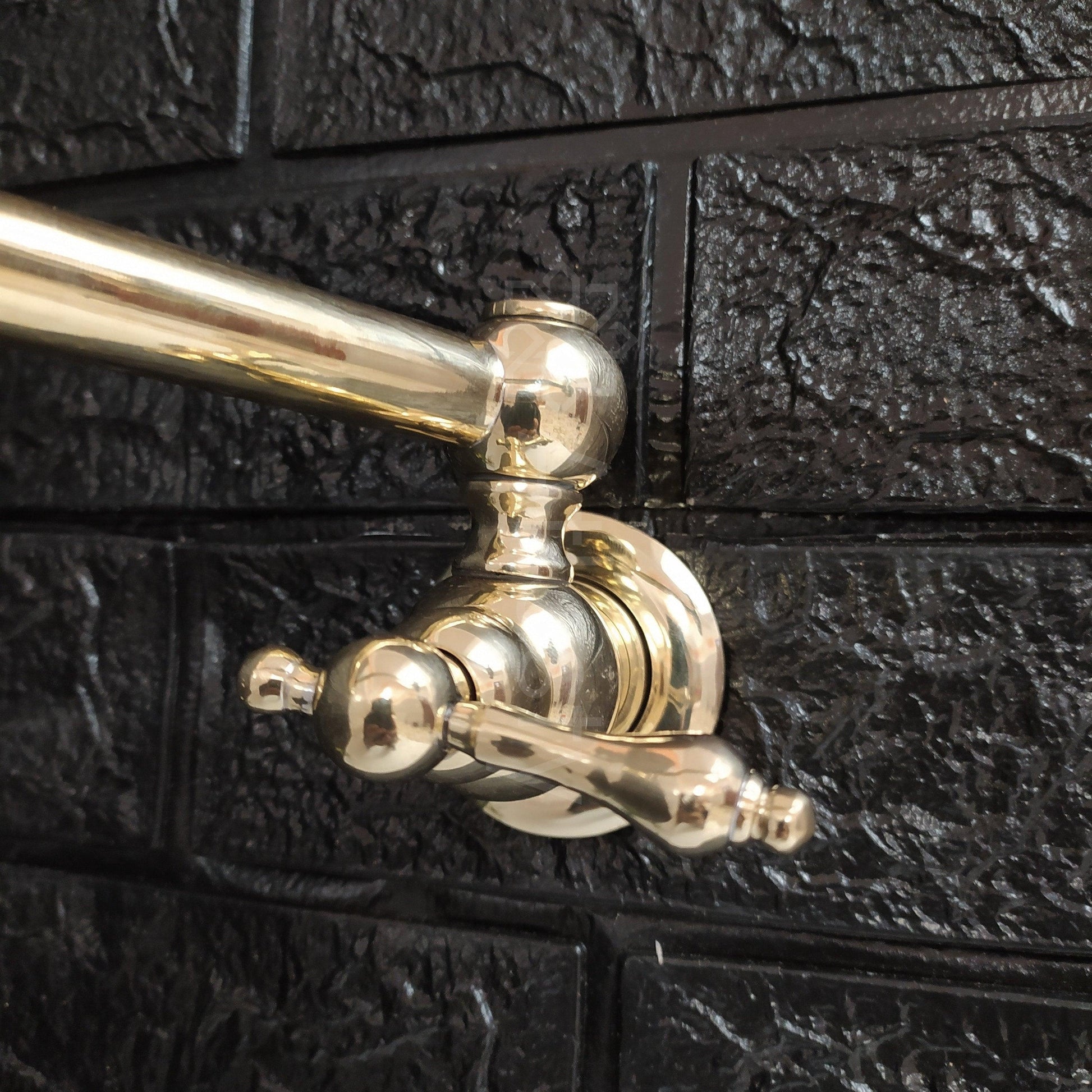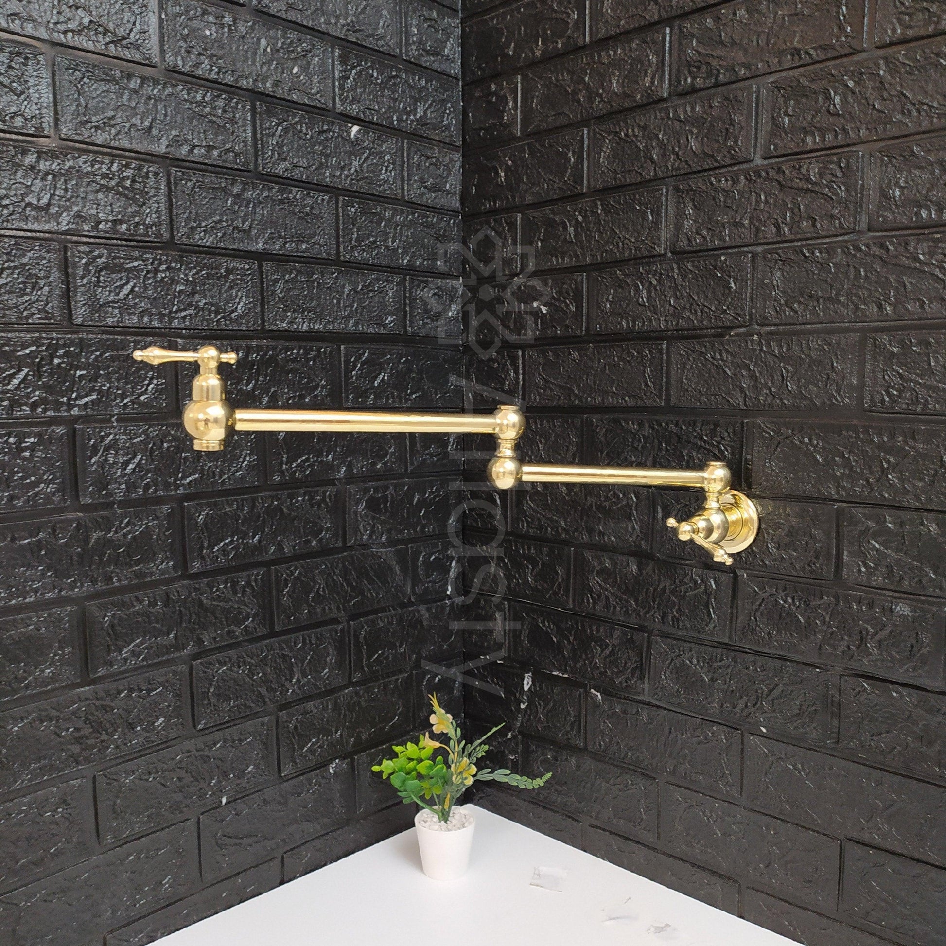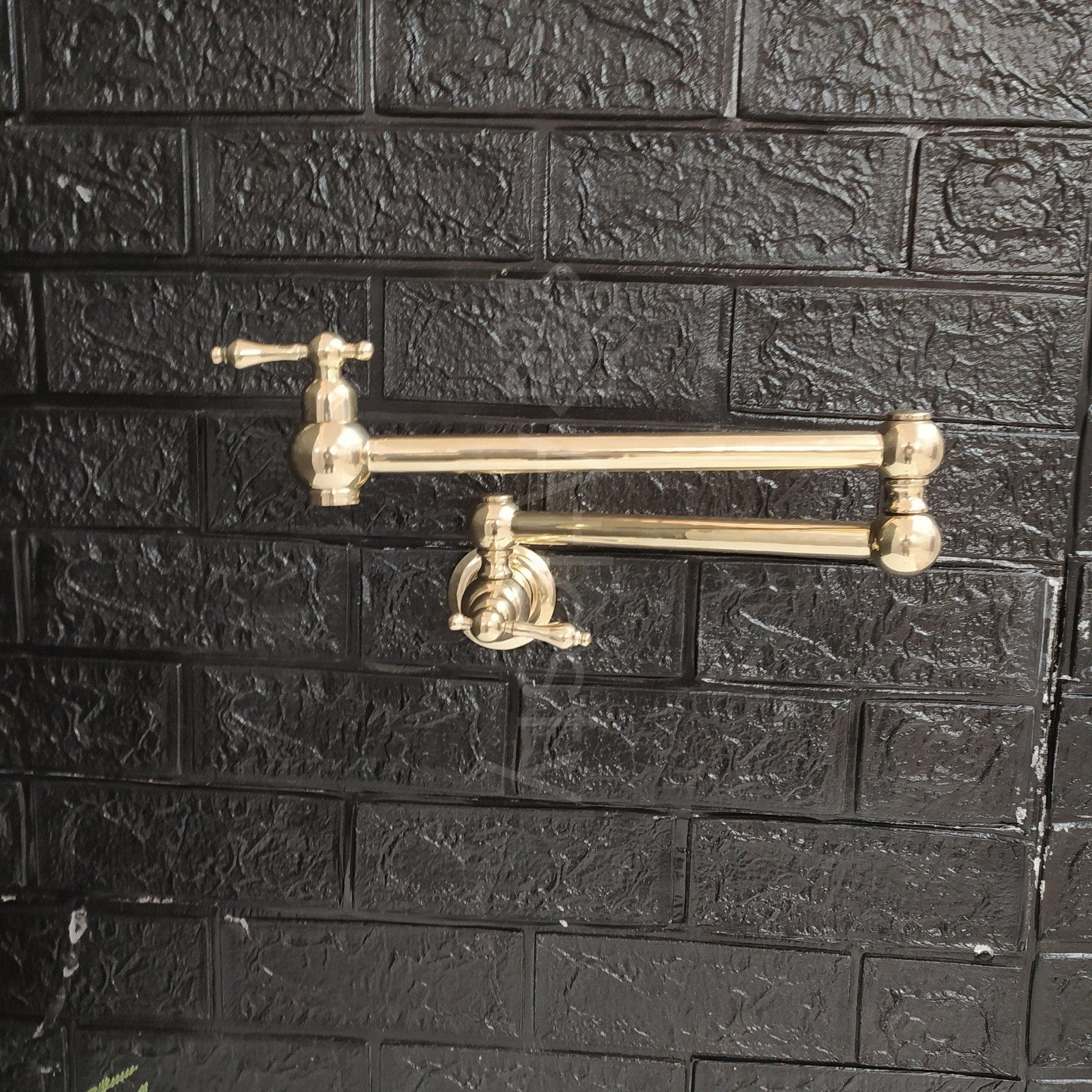 Wall Mount Pot Filler Kitchen Faucet, Unlacquered Solid Brass Pot Filler Kitchen Faucet with Lever Handle , Antique Brass
